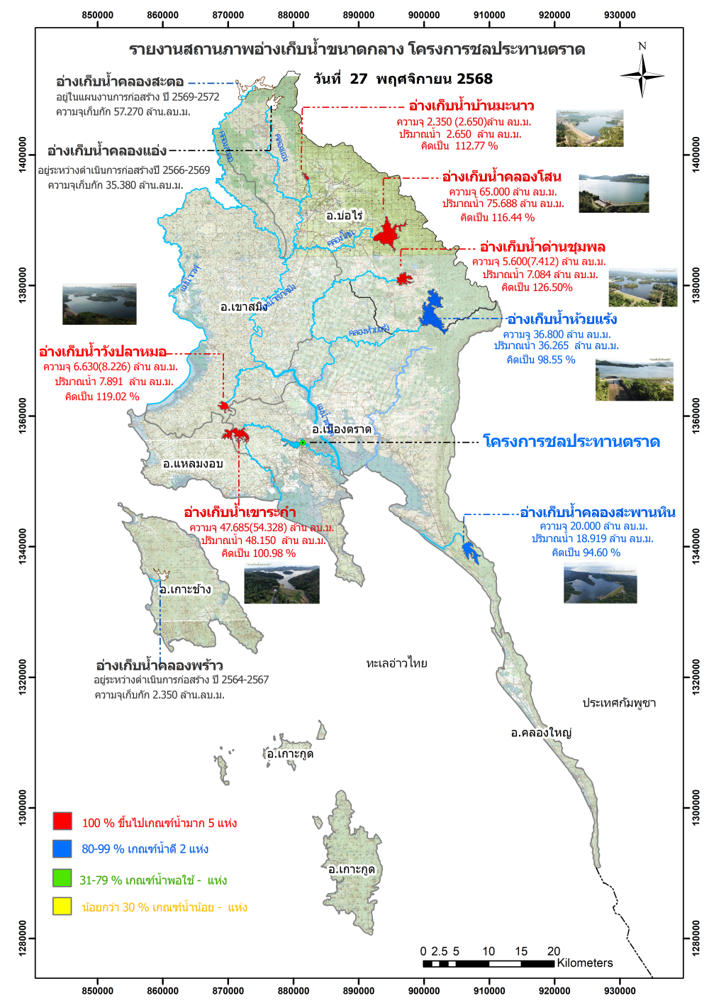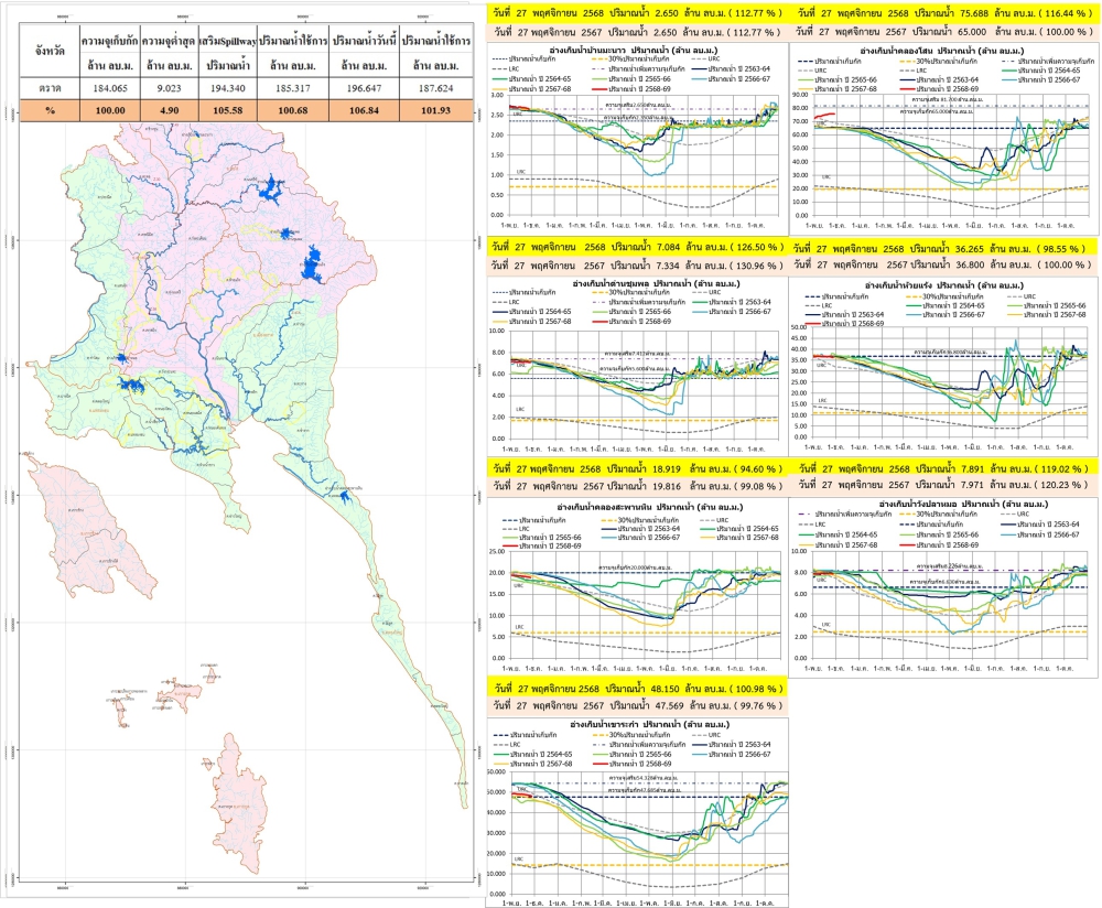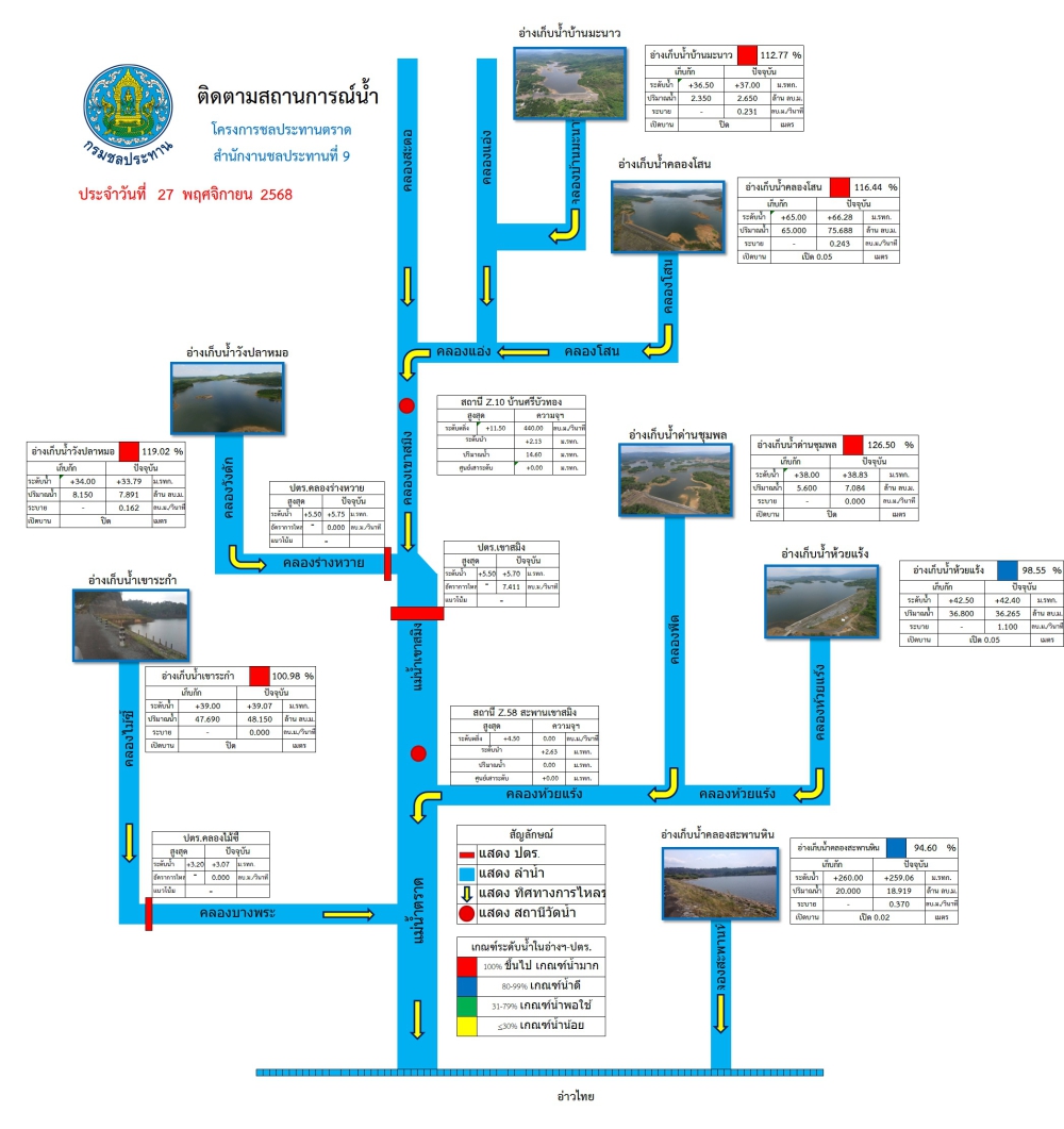 ข้อมูลสถานการณ์ น้ำ แหล่งน้ำ ปริมาณน้ำ ประจำวันที่ 27 พฤศจิกายน 68