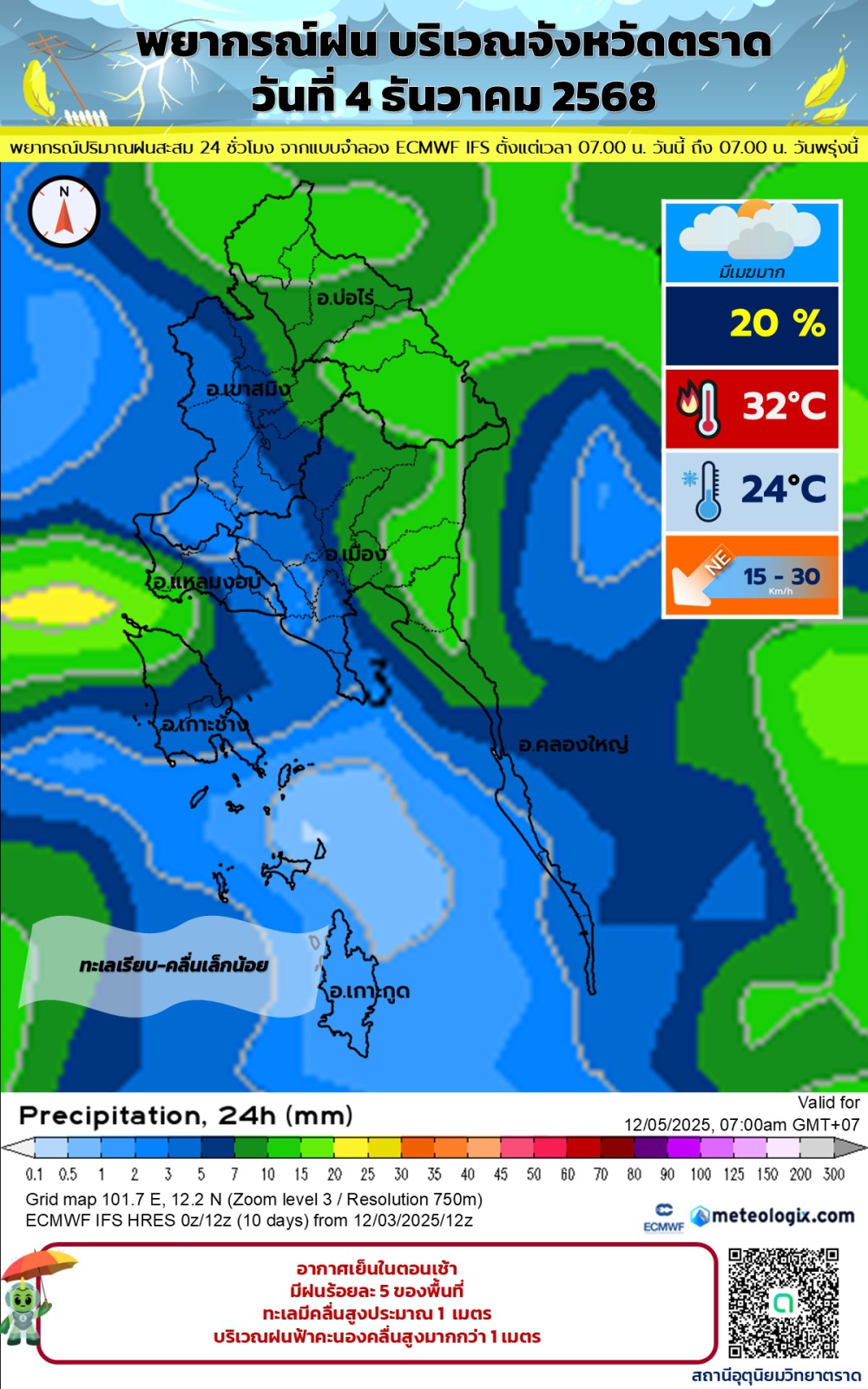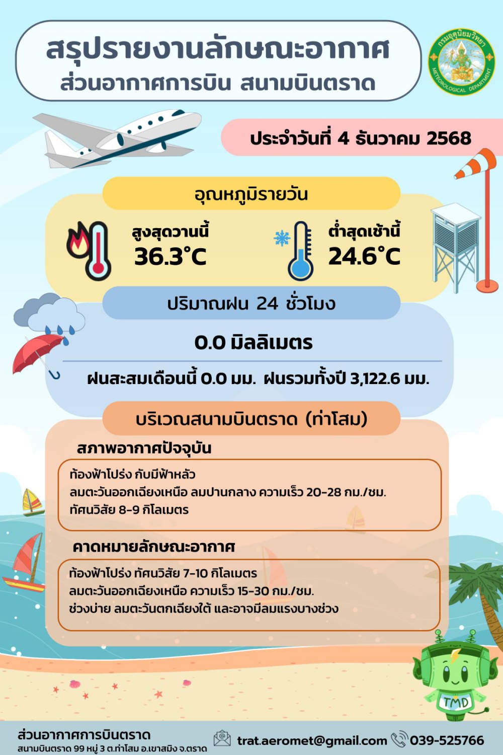พยากรณ์อากาศประจำวันที่ 4 ธันวาคม 2568