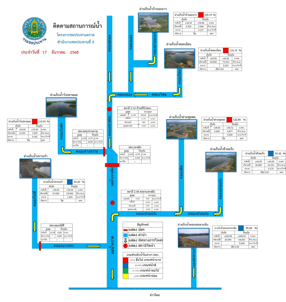 ข้อมูลสถานการณ์ น้ำ แหล่งน้ำ ปริมาณน้ำ ประจำวันที่ 17 ธันวาคม 68