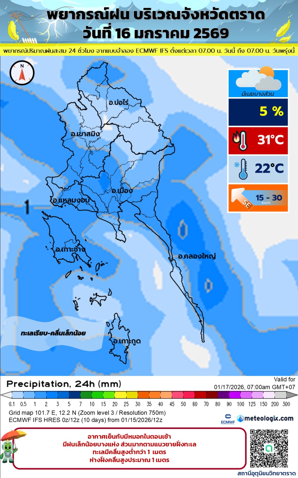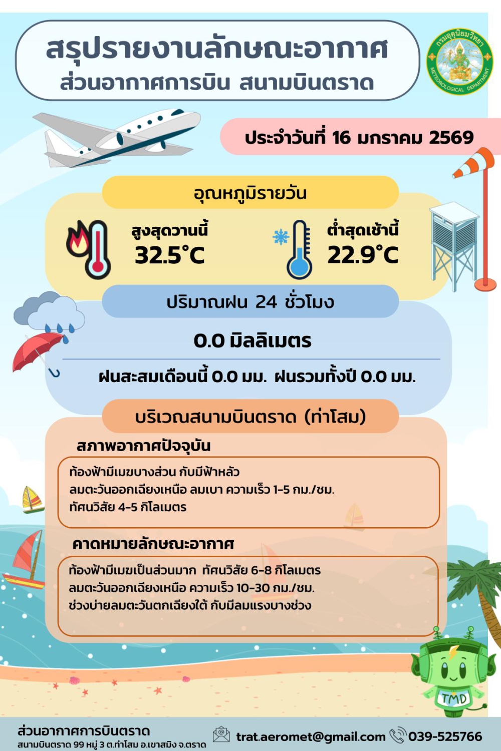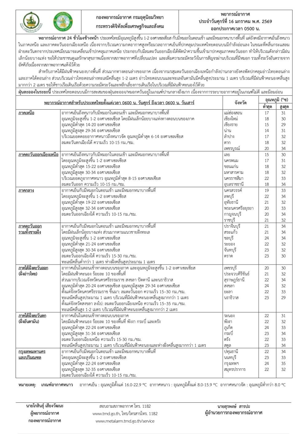 พยากรณ์อากาศประจำวันที่ 16 มกราคม 2569
