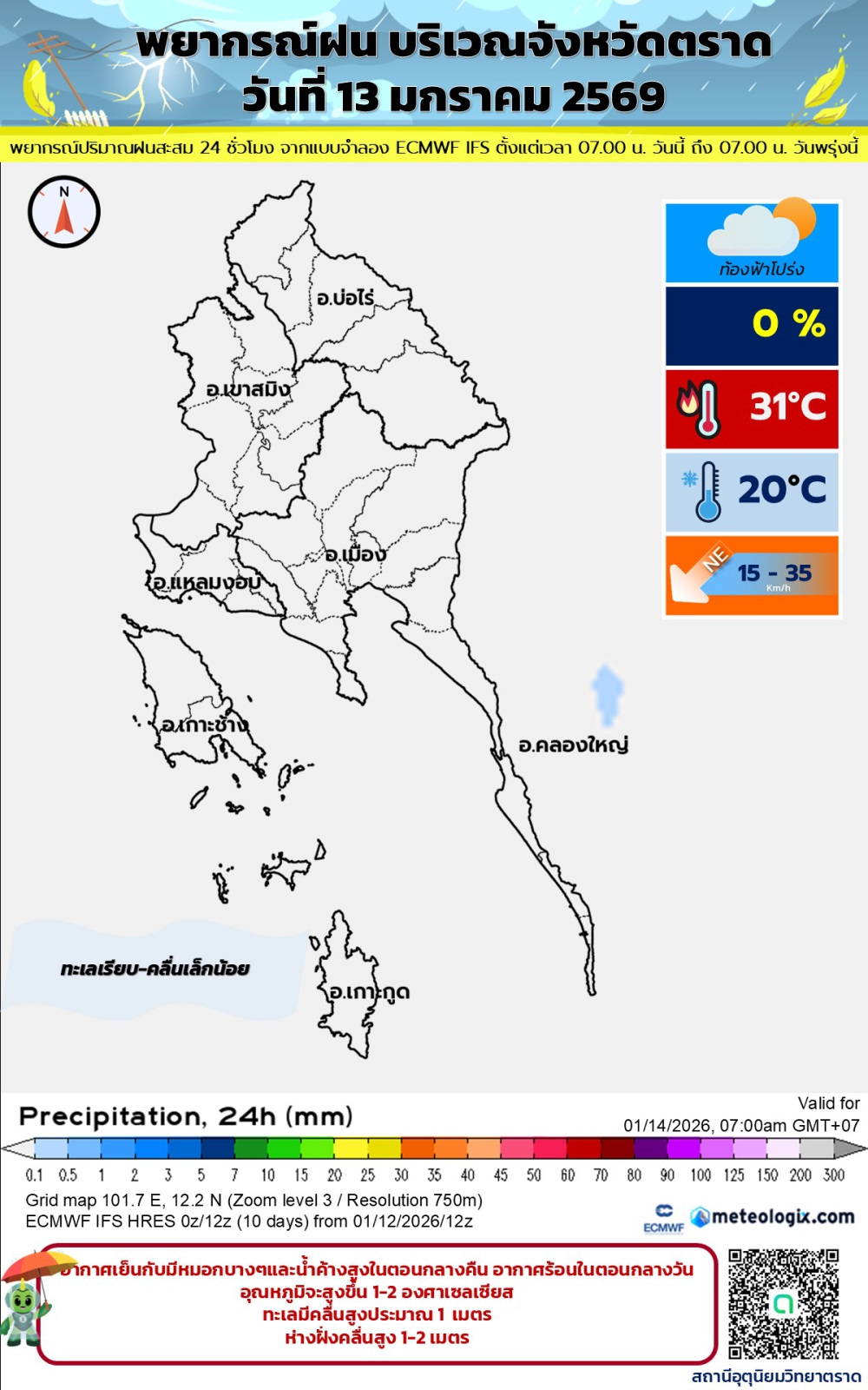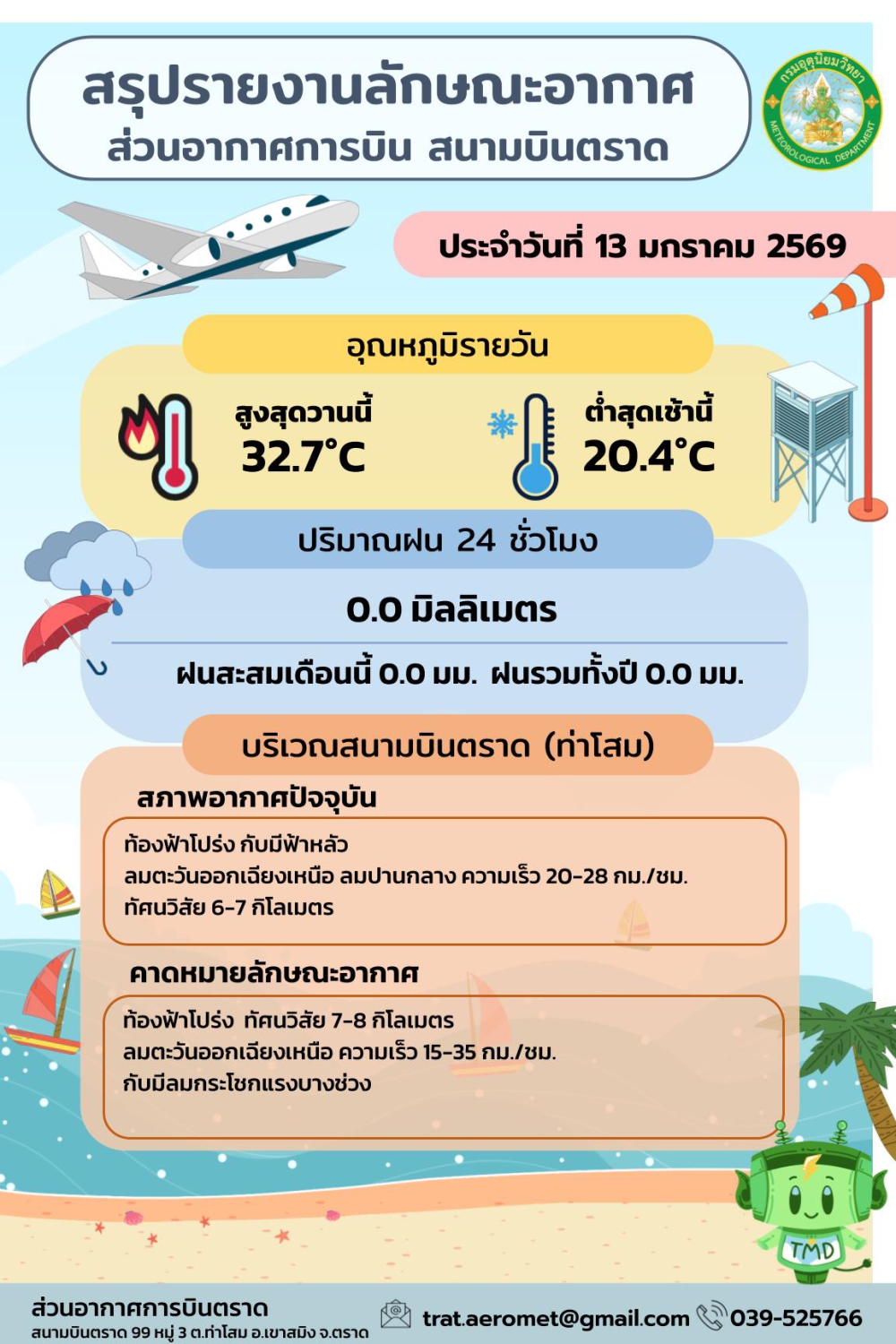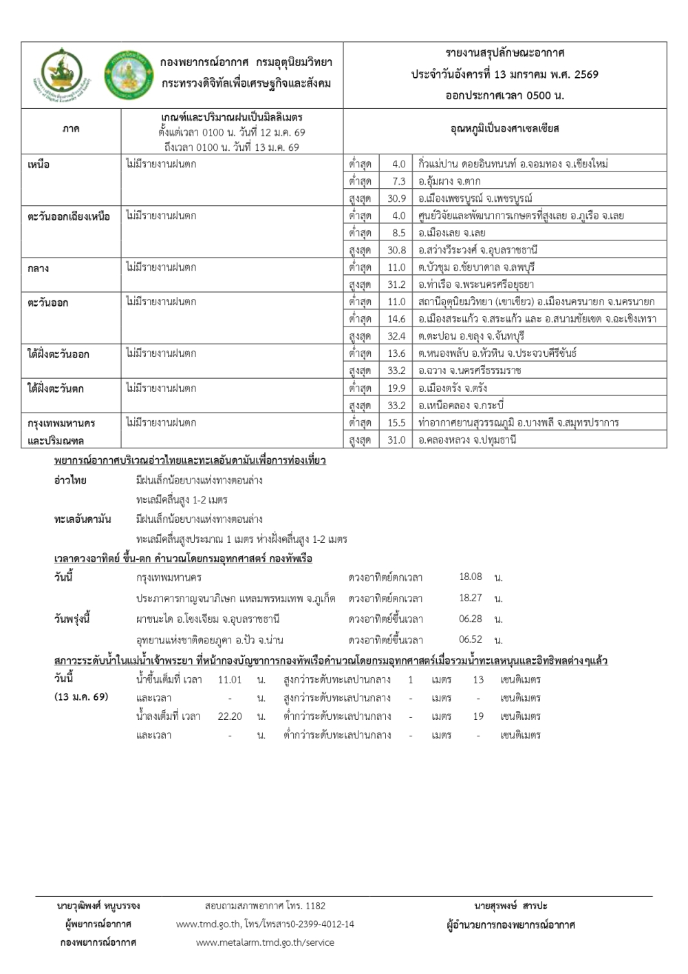 พยากรณ์อากาศประจำวันที่ 13 มกราคม 2569