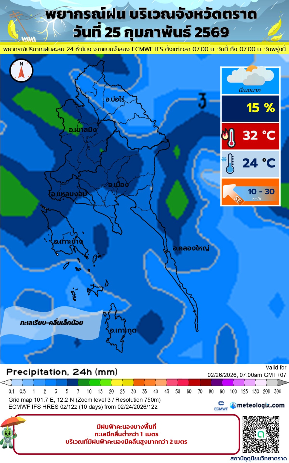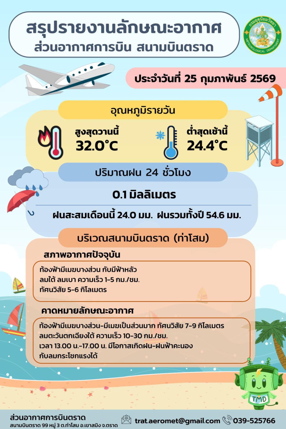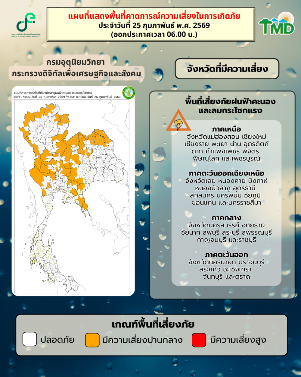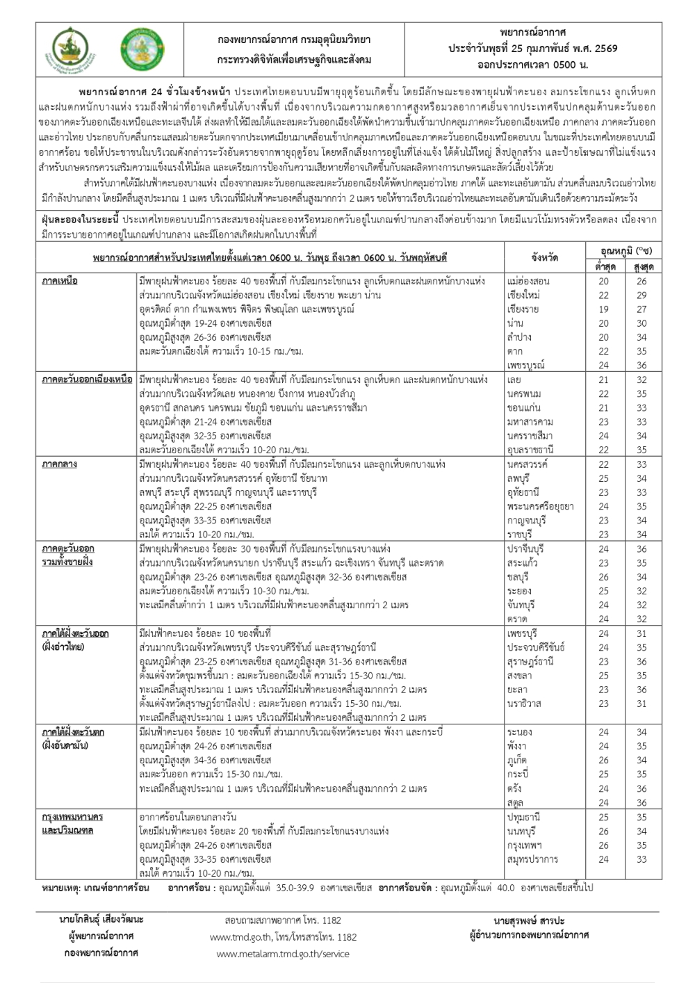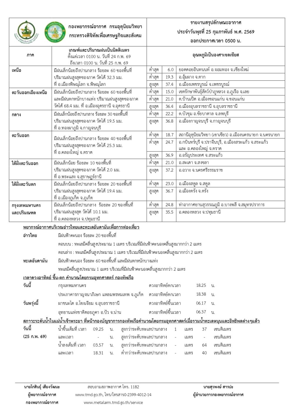 พยากรณ์อากาศประจำวันที่ 25 กุมภาพันธ์ 2569
