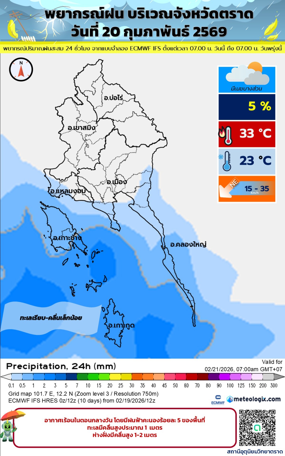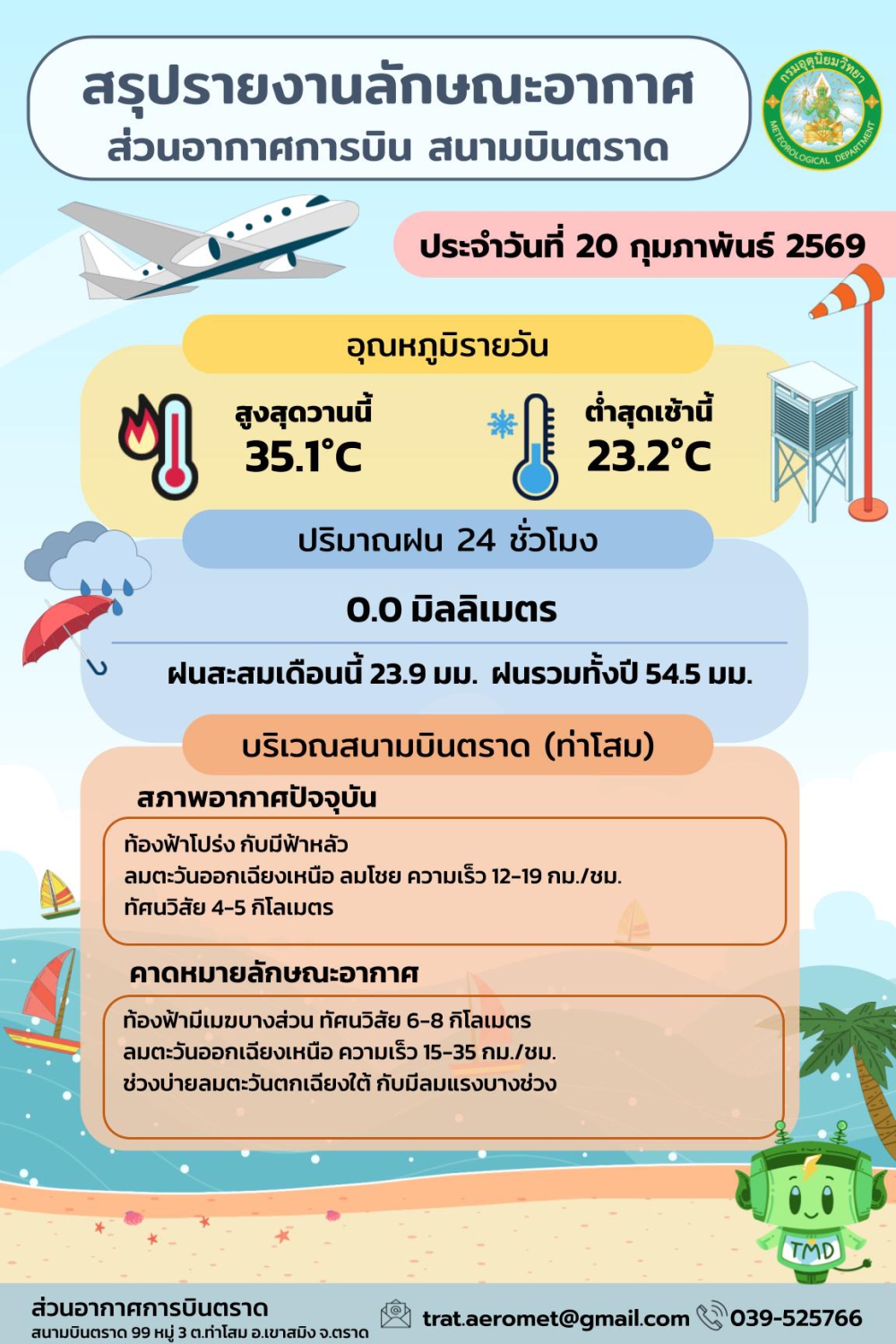 พยากรณ์อากาศประจำวันที่ 20 กุมภาพันธ์ 2569