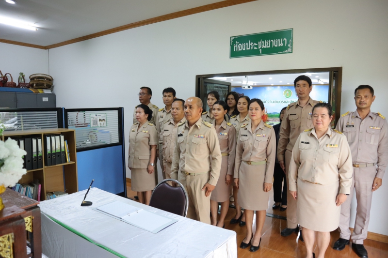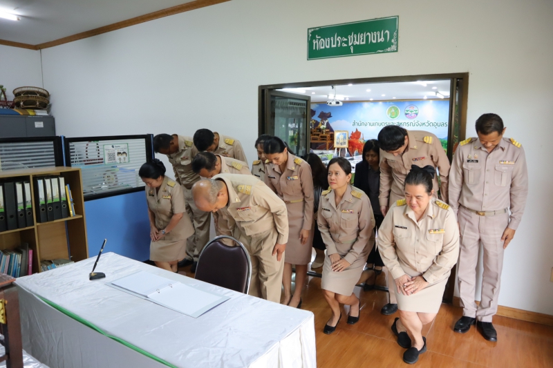 วันจันทร์ที่ 3 พฤศจิกายน 2568 นายนาวิน ป้องกัน เกษตรและสหกรณ์จังหวัดอุบลราชธานี นำเจ้าหน้าที่ ร่วมลงนามถวายความอาลัยแด่ สมเด็จพระนางเจ้าสิริกิติ์ พระบรมราชินีนาถ พระบรมราชชนนีพันปีหลวง เบื้องหน้าพระฉายาลักษณ์ เพื่อแสดงออกถึงความจงรักภักดี และสำนึกในพระมหากรุณาธิคุณอันหาที่สุดมิได้ ณ สำนักงานเกษตรและสหกรณ์จังหวัดอุบลราชธานี
