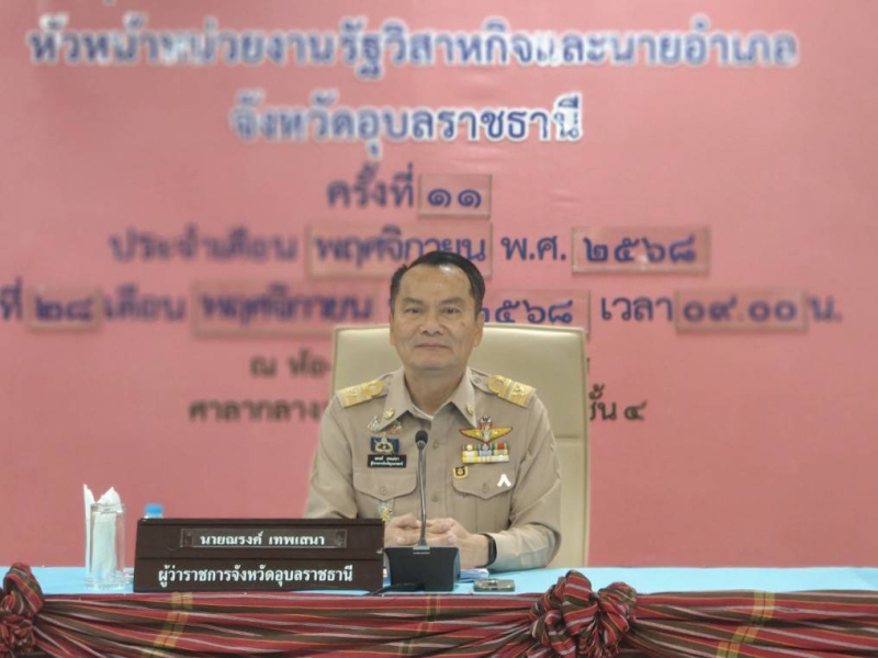 วันศุกร์ที่ 28 พฤศจิกายน 2568 นายนาวิน ป้องกัน เกษตรและสหกรณ์จังหวัดอุบลราชธานี เข้าร่วมการประชุมคณะกรมการจังหวัดอุบลราชธานี หัวหน้าส่วนราชการ หัวหน้าหน่วยงานรัฐวิสาหกิจ คณะกรรมการร่วมภาคเอกชน 3 สถาบัน จังหวัดอุบลราชธานี และนายอำเภอ ครั้งที่ 11/2568 เพื่อรับทราบถึงการขับเคลื่อนนโยบายเร่งด่วน การเตรียมความพร้อมสถานการณ์เร่งด่วนฉุกเฉินในพื้นที่ การเร่งรัดการใช้จ่ายเบิกจ่ายงบประมาณ ประจำปีงบประมาณ พ.ศ. 2569 การดำเนินกิจกรรมเพื่อส่งเสริมเศรษฐกิจในพื้นที่จังหวัดอุบลราชธานี การจัดงานประจำปีและงานกาชาดจังหวัดอุบลราชธานี ประจำปี 2569 โดยมี นายณรงค์ เทพเสนา ผู้ว่าราชการจังหวัดอุบลราชธานี เป็นประธานในการประชุม ณ ห้องประชุมพรหมวรราช ชั้น 4 ศาลากลางจังหวัดอุบลราชธานี