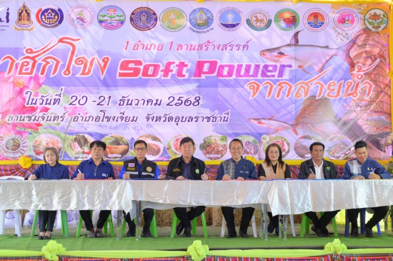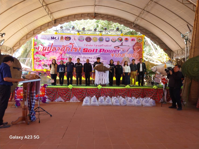 วันเสาร์ที่ 20 ธันวาคม 2568 นายนาวิน ป้องกัน เกษตรและสหกรณ์จังหวัดอุบลราชธานี ร่วมงานมหกรรม “กินปลาฮักโขง : Soft Power จากสายน้ำ” ซึ่งการจัดงานมีวัตถุประสงค์เพื่อพัฒนาและขับเคลื่อน Soft Power ด้านประมง ภายใต้แนวคิดการบูรณาการการอนุรักษ์ทรัพยากรธรรมชาติและสิ่งแวดล้อมควบคู่กับการพัฒนาเศรษฐกิจ สังคม และวัฒนธรรมท้องถิ่น โดยเฉพาะการส่งเสริมเศรษฐกิจฐานรากและการท่องเที่ยวของชุมชนริมแม่น้ำโขง ผ่านกิจกรรมการแข่งขันทำอาหารพื้นบ้านจากปลา การออกร้านแสดงและจำหน่ายสินค้า OTOP การปล่อยพันธุ์สัตว์น้ำ โดยมี นายชูวิทย์ พิทักษ์พรพัลลภ ที่ปรึกษารัฐมนตรีว่าการกระทรวงเกษตรและสหกรณ์ เป็นประธานในพิธีเปิดงาน ณ ลานชมจันทร์ บริเวณหน้าสถานีตำรวจภูธรอำเภอโขงเจียม อำเภอโขงเจียม จังหวัดอุบลราชธานี