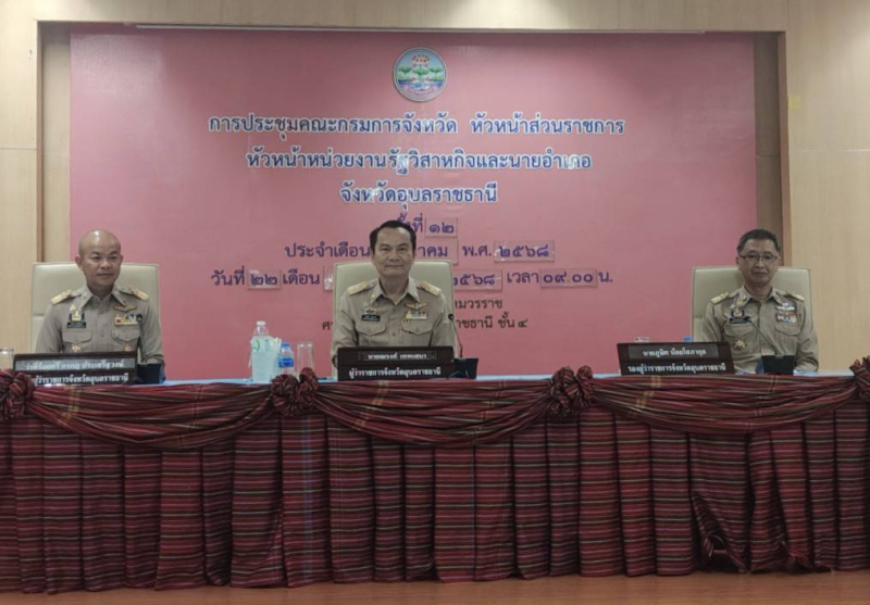 วันจันทร์ที่ 22 ธันวาคม 2568 นายนาวิน ป้องกัน เกษตรและสหกรณ์จังหวัดอุบลราชธานี เข้าร่วมการประชุมคณะกรมการจังหวัดอุบลราชธานี หัวหน้าส่วนราชการ หัวหน้าหน่วยงานรัฐวิสาหกิจ คณะกรรมการร่วมภาคเอกชน 3 สถาบัน จังหวัดอุบลราชธานี และนายอำเภอ ครั้งที่ 12/2568 ประจำเดือนธันวาคม 2568 โดยมี นายณรงค์ เทพเสนา ผู้ว่าราชการจังหวัดอุบลราชธานี เป็นประธานในการประชุม ณ ห้องประชุมพรหมวรราช ชั้น 4 ศาลากลางจังหวัดอุบลราชธานี
