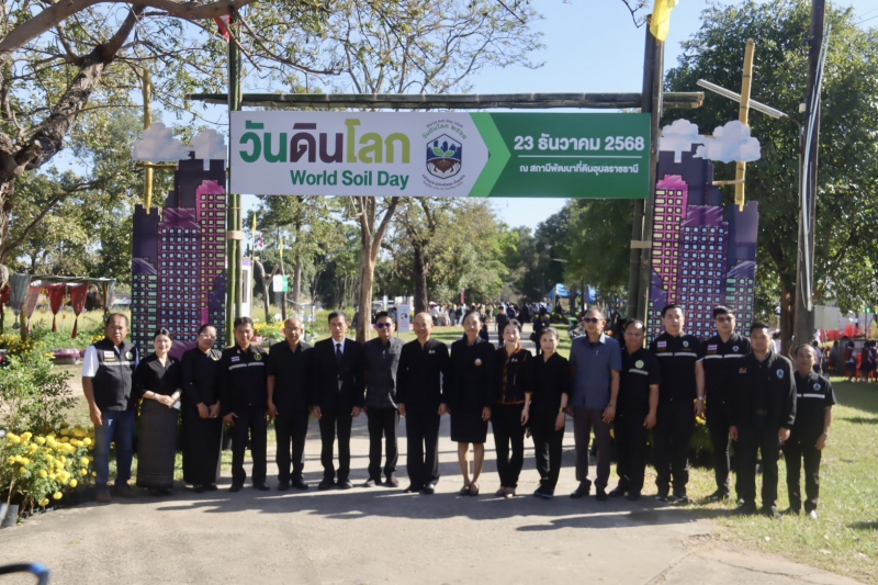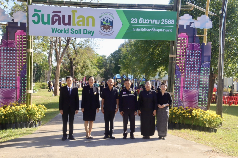 วันอังคารที่ 23 ธันวาคม 2568 นายนาวิน ป้องกัน เกษตรและสหกรณ์จังหวัดอุบลราชธานี พร้อมด้วย นายไพสิทธิ์ พละสินธุ์ หัวหน้ากลุ่มยุทธศาสตร์พัฒนาการเกษตร ร่วมงานวันดินโลก (World Soil Day) ประจำปี 2568 ภายใต้หัวข้อ “Healthy Soil for Healthy Cities : ดินที่สมบูรณ์ สู่เมืองที่สมดุลเกื้อกูลชีวิต” พร้อมมอบเกียรติบัตรแก่หมอดินอาสาดีเด่น เพื่อยกย่องเชิดชูเกียรติผู้มีบทบาทสำคัญในการอนุรักษ์และพัฒนาทรัพยากรดินในระดับพื้นที่ โดยมี ว่าที่ร้อยตรีกรกฎ ประเสริฐวงษ์ รองผู้ว่าราชการจังหวัดอุบลราชธานี เป็นประธานในพิธีเปิดงาน ณ สถานีพัฒนาที่ดินอุบลราชธานี ตำบลท่าช้าง อำเภอสว่างวีระวงศ์ จังหวัดอุบลราชธานี
