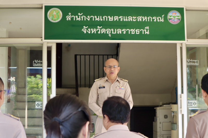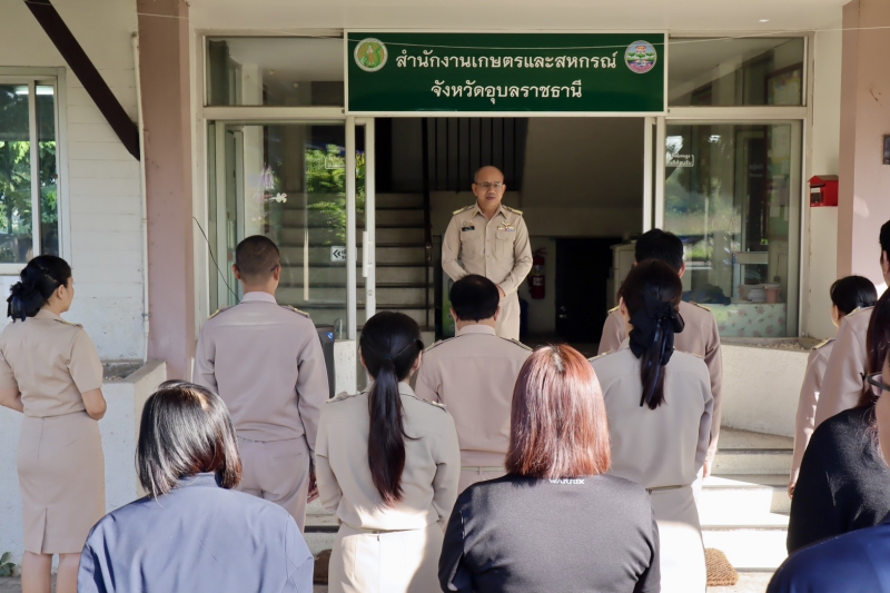 วันจันทร์ที่ 9 มีนาคม 2569 นายนาวิน ป้องกัน เกษตรและสหกรณ์จังหวัดอุบลราชธานี นำเจ้าหน้าที่ ร่วมกิจกรรมเข้าแถวเคารพธงชาติ สวดมนต์ไหว้พระ เพื่อเสริมสร้างจิตสำนึกต่อสถาบันชาติ ศาสนา พระมหากษัตริย์ และการเป็นข้าราชการที่ดี แสดงออกถึงความจงรักภักดีต่อชาติ ศาสนาและพระมหากษัตริย์ ซึ่งเป็นการเตรียมความพร้อมในการปฏิบัติราชการ และเสริมสร้างความรักความสามัคคีในองค์กร อีกทั้งเป็นแบบอย่างที่ดีให้กับประชาชนโดยทั่วไป ณ สำนักงานเกษตรและสหกรณ์จังหวัดอุบลราชธานี