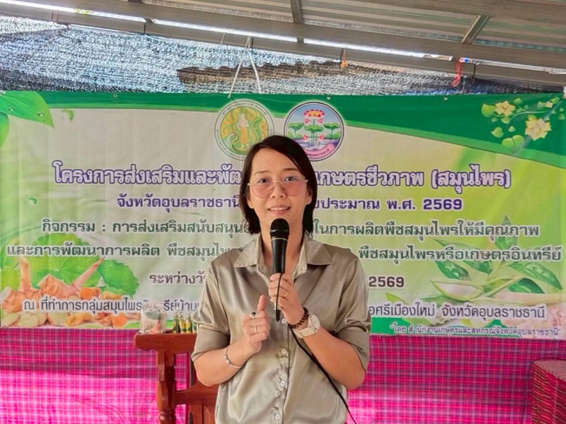 วันพฤหัสบดีที่ 19 มีนาคม 2569 นายนาวิน ป้องกัน เกษตรและสหกรณ์จังหวัดอุบลราชธานี เป็นประธานเปิดการฝึกอบรมเกษตรกร ภายใต้โครงการส่งเสริมและพัฒนาสินค้าเกษตรชีวภาพ (สมุนไพร) จังหวัดอุบลราชธานี ประจำปีงบประมาณ พ.ศ. 2569 เพื่อพัฒนาศักยภาพเกษตรกรในการพัฒนาการผลิตสมุนไพร และส่งเสริมพัฒนากลุ่มเกษตรกร วิสาหกิจชุมชนในพื้นที่ได้ผลิตสมุนไพรที่มีคุณภาพและมาตรฐาน GAP อินทรีย์ หรือมาตรฐานอื่นๆ ตลอดจนนำไปแปรรูปวัตถุดิบสมุนไพรเบื้องต้น ประกอบด้วย 2 กิจกรรมหลัก คือ 1) กิจกรรมการส่งเสริมสนับสนุนองค์ความรู้ในการผลิตพืชสมุนไพรให้มีคุณภาพมาตรฐาน และ 2) กิจกรรมการพัฒนาการผลิตพืชสมุนไพรสู่มาตรฐาน GAP พืชสมุนไพร หรือเกษตรอินทรีย์ โดยมี นายไพสิทธิ์ พละสินธุ์ หัวหน้ากลุ่มยุทธศาสตร์พัฒนาการเกษตร พร้อมเจ้าหน้าที่ผู้รับผิดชอบ ดำเนินการจัดฝึกอบรมดังกล่าว ณ ที่ทำการกลุ่มสมุนไพรอินทรีย์บ้านบูรพา หมู่ 3 ตำบลดอนใหญ่ อำเภอศรีเมืองใหม่ จังหวัดอุบลราชธานี