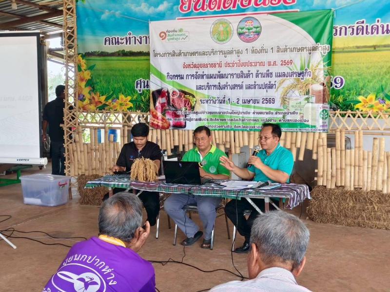 วันอังคารที่ 1 เมษายน 2569 นายนาวิน ป้องกัน เกษตรและสหกรณ์จังหวัดอุบลราชธานี พร้อมด้วยเจ้าหน้าที่กลุ่มยุทธศาสตร์พัฒนาการเกษตร ลงพื้นที่จัดกิจกรรมการจัดทำแผนพัฒนารายสินค้าเกษตรและบริการมูลค่าสูง ภายใต้โครงการสินค้าเกษตรและบริการมูลค่าสูง 1 ท้องถิ่น 1 สินค้าเกษตรมูลค่าสูง ประจำปีงบประมาณ พ.ศ. 2569 จังหวัดอุบลราชธานี โดยได้ร่วมกันจัดทำแผนพัฒนารายสินค้าเกษตร ชนิดสินค้า ข้าว ซึ่งกิจกรรมประกอบด้วย การวิเคราะห์ศักยภาพของหมู่บ้าน และประเมินสถานการณ์ด้านการเกษตร ที่เป็นสินค้าเกษตรและบริการมูลค่าสูง รับทราบถึงสภาพปัญหา ความขาดแคลนและความต้องการของกลุ่ม การค้นหา PAIN POINT และแนวทางการแก้ไข การเพิ่มผลผลิต เพิ่มรายได้ การลดต้นทุนการผลิต และเพิ่มช่องทางการตลาด การบันทึกข้อมูลพื้นฐานของกลุ่ม ก่อนเข้าร่วมโครงการ โดยมีผู้แทนจาก ศูนย์เมล็ดพันธุ์ข้าวอุบลราชธานี สำนักงานสหกรณ์จังหวัดอุบลราชธานี สถานีพัฒนาที่ดินอุบลราชธานี สำนักงานเกษตรอำเภอนาเยีย และสำนักงานเปศุสัตว์อำเภอนาเยีย ร่วมให้ข้อมูลในพื้นที่ ทั้งนี้ ได้รับฟังการบรรยายหัวข้อการเชื่อมโยงตลาดและการค้าสินค้าข้าวสู่ตลาดพรีเมี่ยม โดยได้รับเกียรติจาก ดร.รัตนภรณ์ แซ่ลี้ อาจารย์ประจำสาขาการตลาด คณะบริหารธุรกิจและการจัดการ มหาวิทยาลัยราชภัฏอุบลราชธานี ณ ที่ทำการกลุ่มศูนย์ข้าวชุมชนนาแปลงใหญ่นาเยีย ตำบลนาเยีย อำเภอนาเยีย จังหวัดอุบลราชธานี