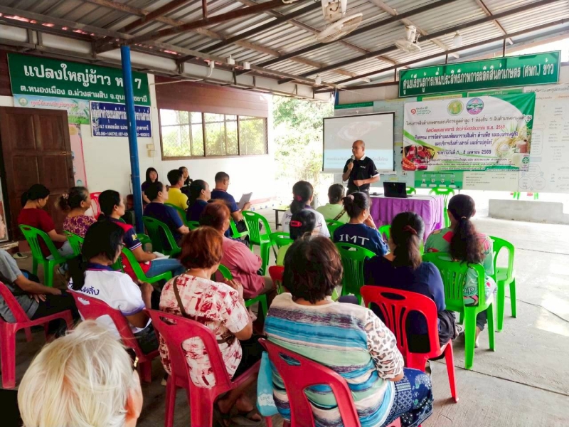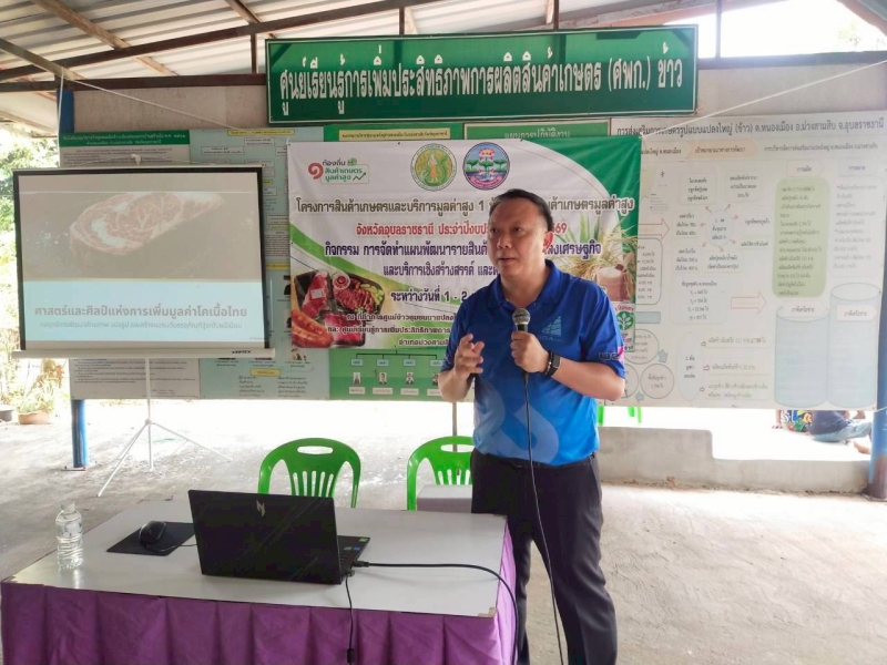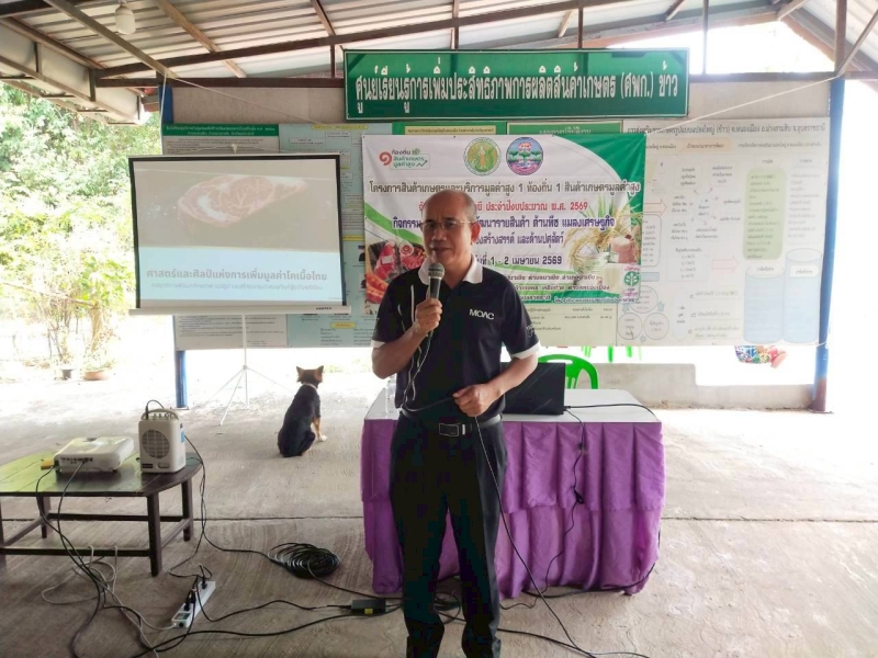 วันพฤหัสบดีที่ 2 เมษายน 2569 นายนาวิน ป้องกัน เกษตรและสหกรณ์จังหวัดอุบลราชธานี พร้อมด้วยเจ้าหน้าที่กลุ่มยุทธศาสตร์พัฒนาการเกษตร ลงพื้นที่จัดกิจกรรมการจัดทำแผนพัฒนารายสินค้าเกษตรและบริการมูลค่าสูง ภายใต้โครงการสินค้าเกษตรและบริการมูลค่าสูง 1 ท้องถิ่น 1 สินค้าเกษตรมูลค่าสูง ประจำปีงบประมาณ พ.ศ. 2569 จังหวัดอุบลราชธานี โดยได้ร่วมกันจัดทำแผนพัฒนารายสินค้าเกษตร ชนิดสินค้า โคเนื้อ โดยได้รับเกียรติจาก อาจารย์พรชัย วีระนันทาเวทย์ คณะบริหารธุรกิจและการจัดการ มหาวิทยาลัยราชภัฏอุบลราชธานี บรรยายหัวข้อ การพัฒนาศักยภาพการแปรรูปโคเนื้อเพื่อเพิ่มมูลค่า