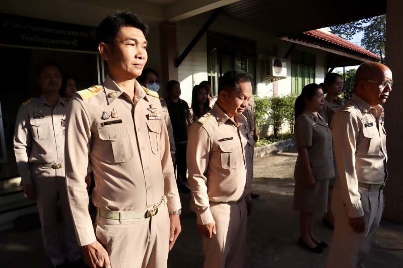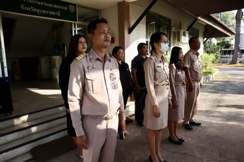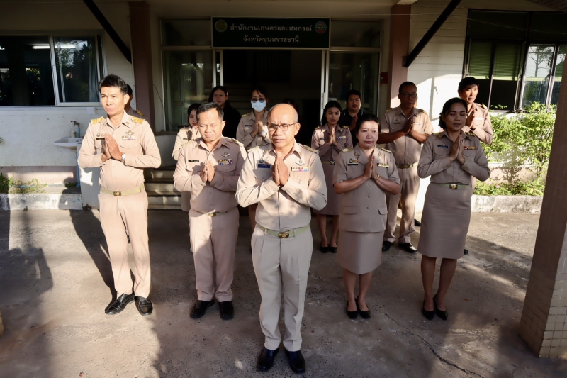 นายนาวิน ป้องกัน เกษตรและสหกรณ์จังหวัดอุบลราชธานี นำเจ้าหน้าที่ ร่วมกิจกรรมเข้าแถวเคารพธงชาติ สวดมนต์ไหว้พระ เพื่อเสริมสร้างจิตสำนึกต่อสถาบันชาติ ศาสนา พระมหากษัตริย์ และการเป็นข้าราชการที่ดี แสดงออกถึงความจงรักภักดีต่อชาติ ศาสนาและพระมหากษัตริย์ ซึ่งเป็นการเตรียมความพร้อมในการปฏิบัติราชการ และเสริมสร้างความรักความสามัคคีในองค์กร อีกทั้งเป็นแบบอย่างที่ดีให้กับประชาชนโดยทั่วไป ณ สำนักงานเกษตรและสหกรณ์จังหวัดอุบลราชธานี