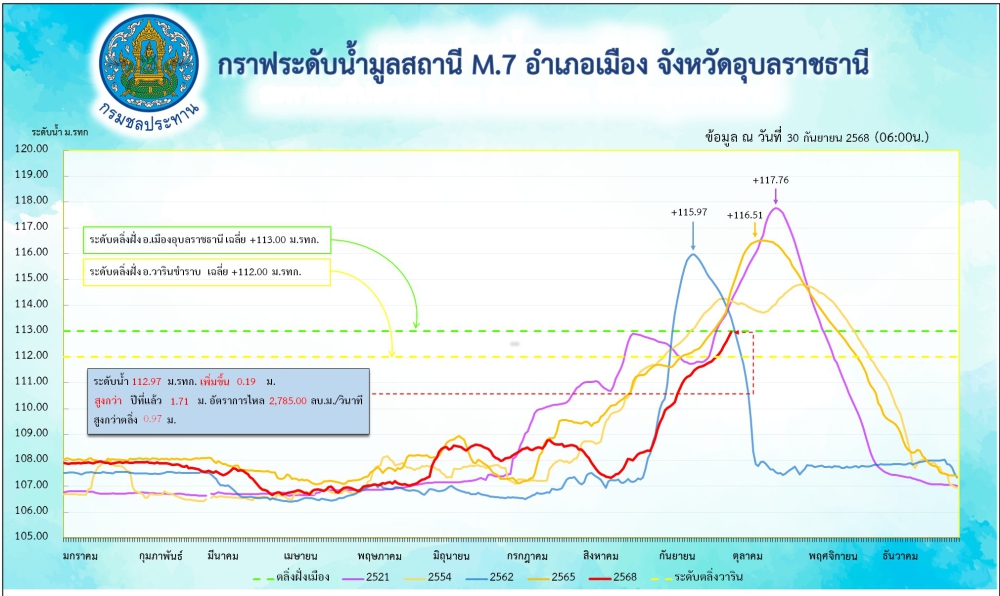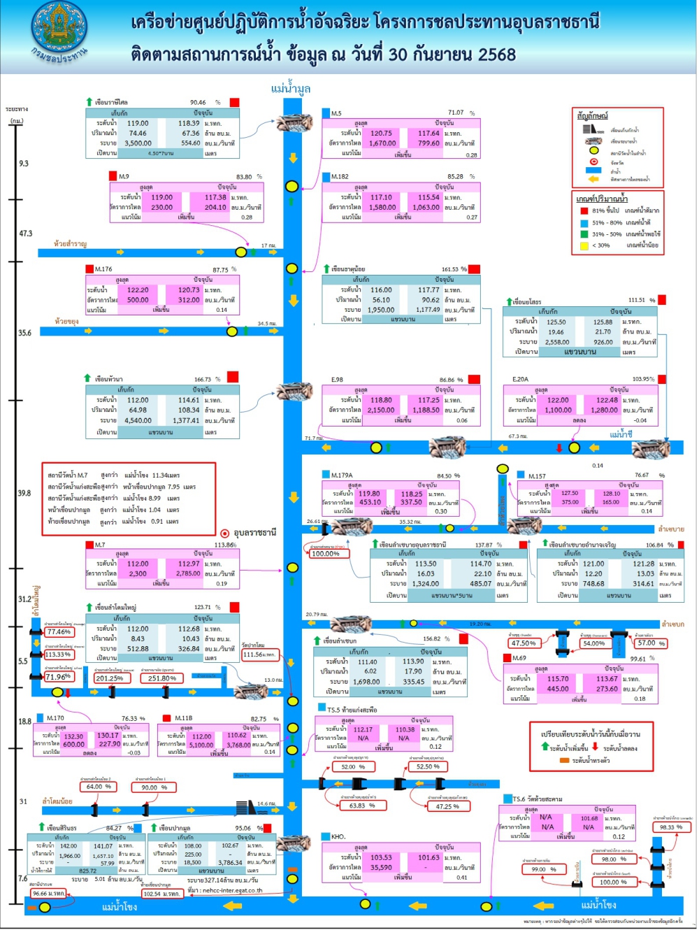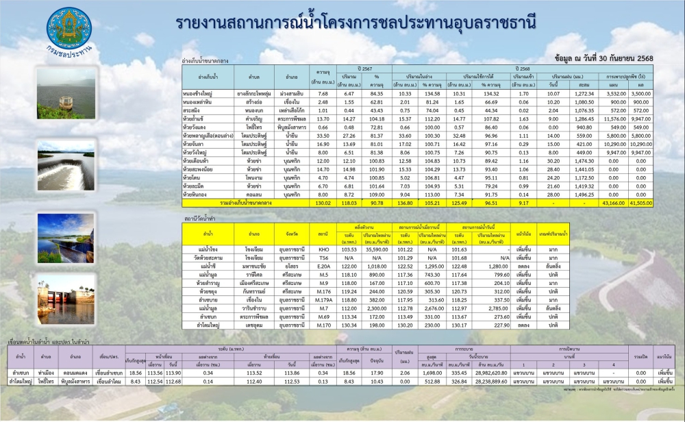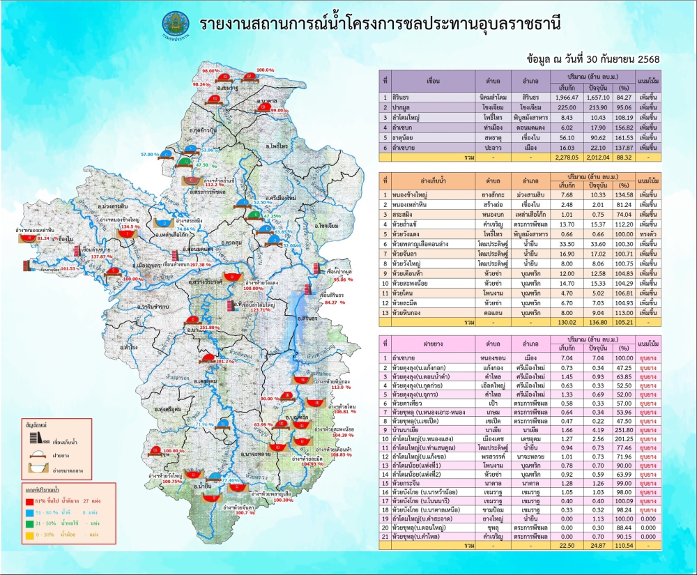 สรุปรายงานสถานการณ์น้ำในเขตจังหวัดอุบลราชธานี วันที่ 30 กันยายน 2568