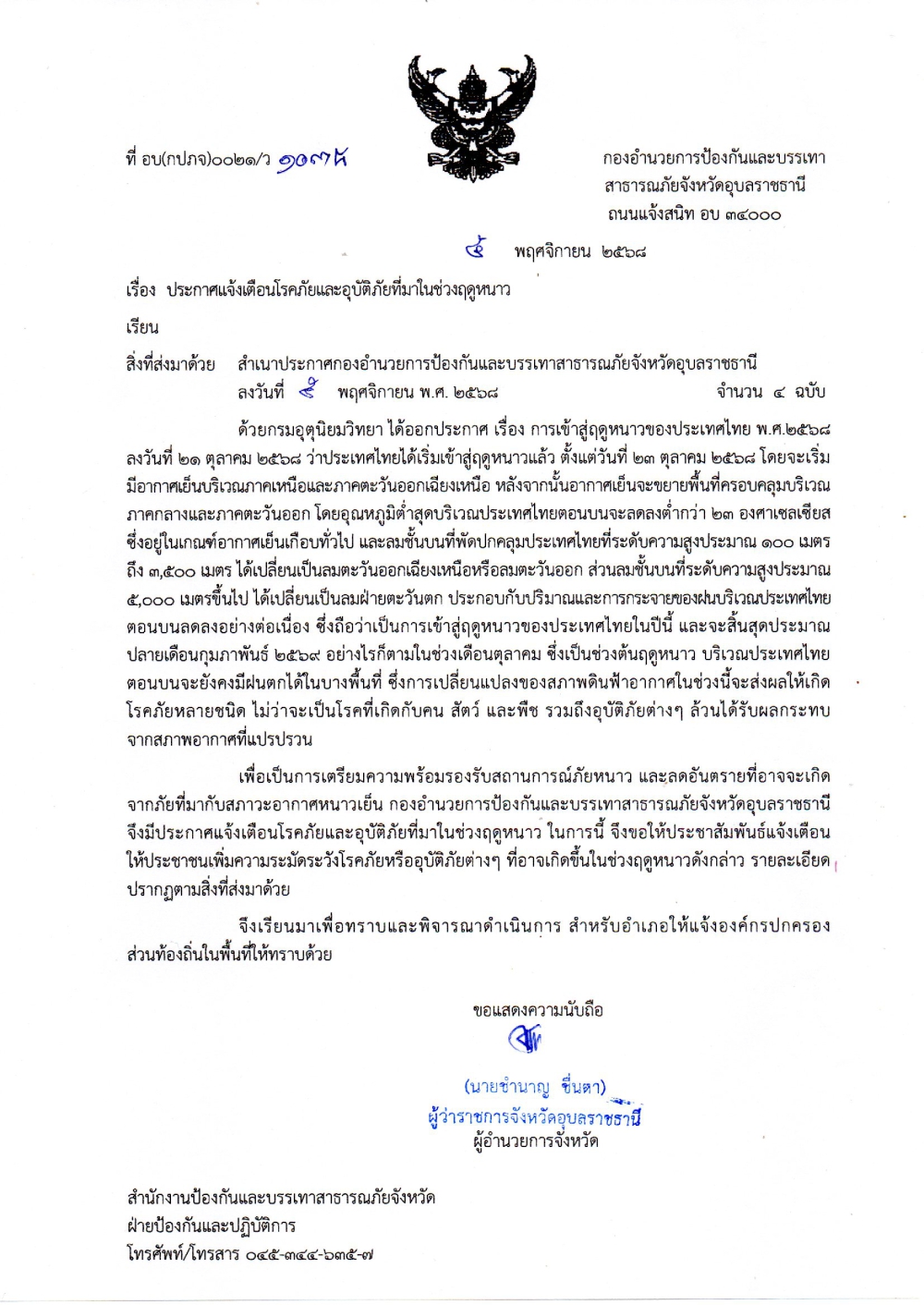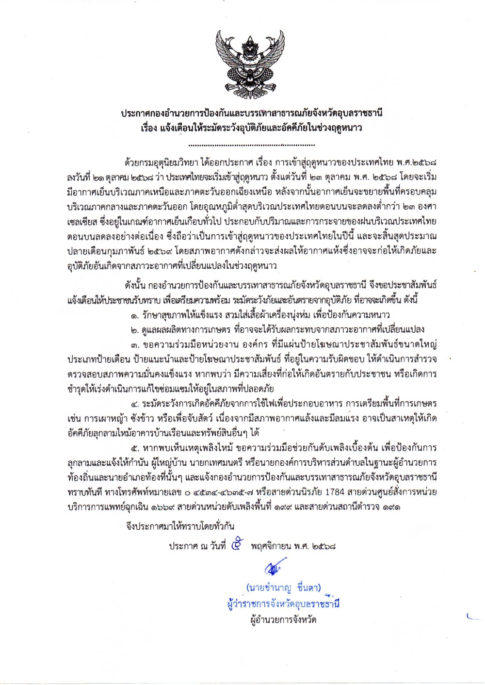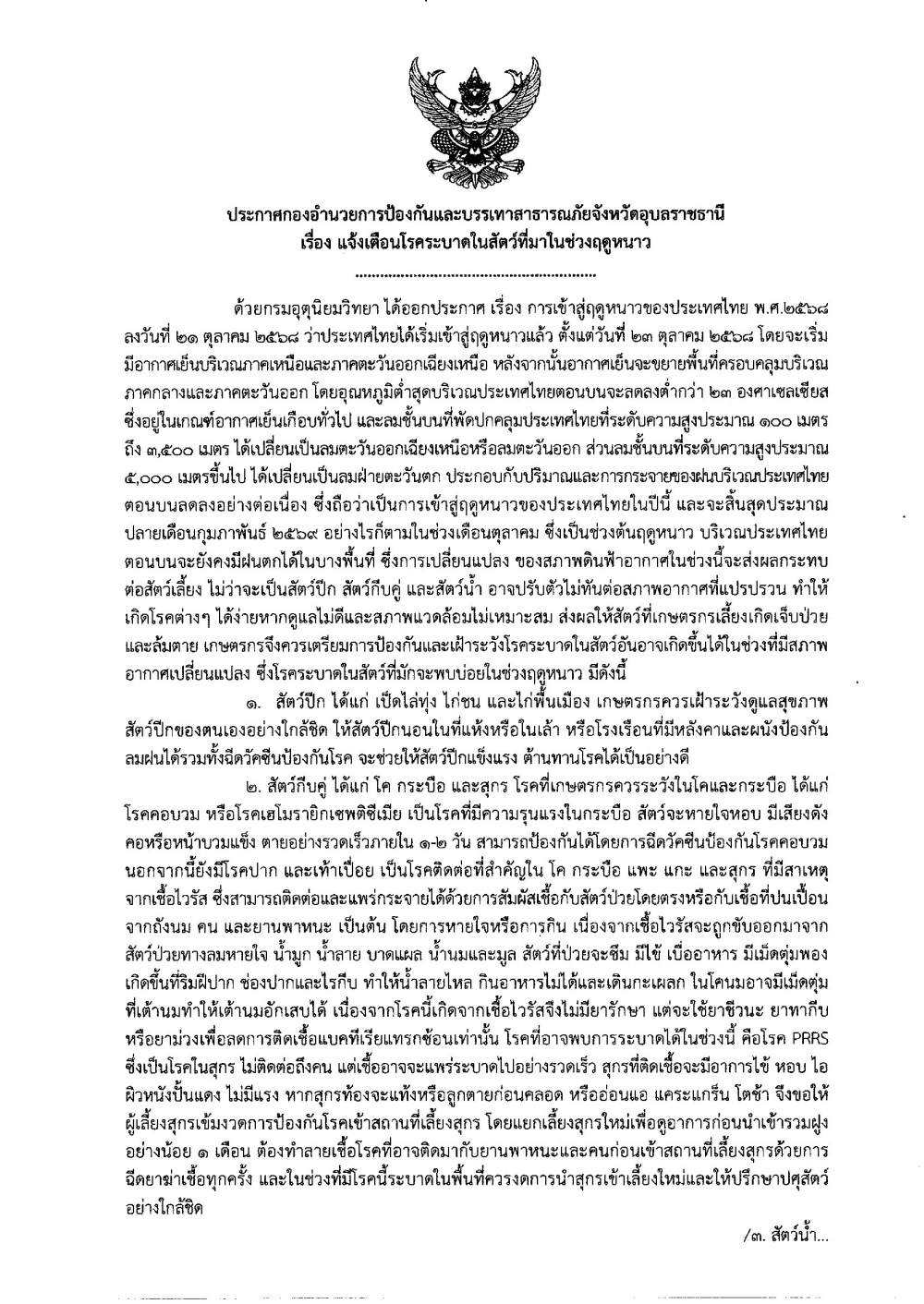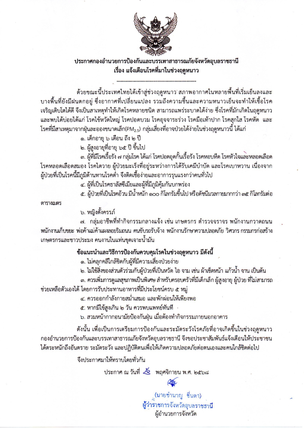 แจ้งเตือนประชาชน ระมัดระวังโรคที่ระบาดในช่วงฤดูหนาว วันที่ 5 พฤศจิกายน 2568