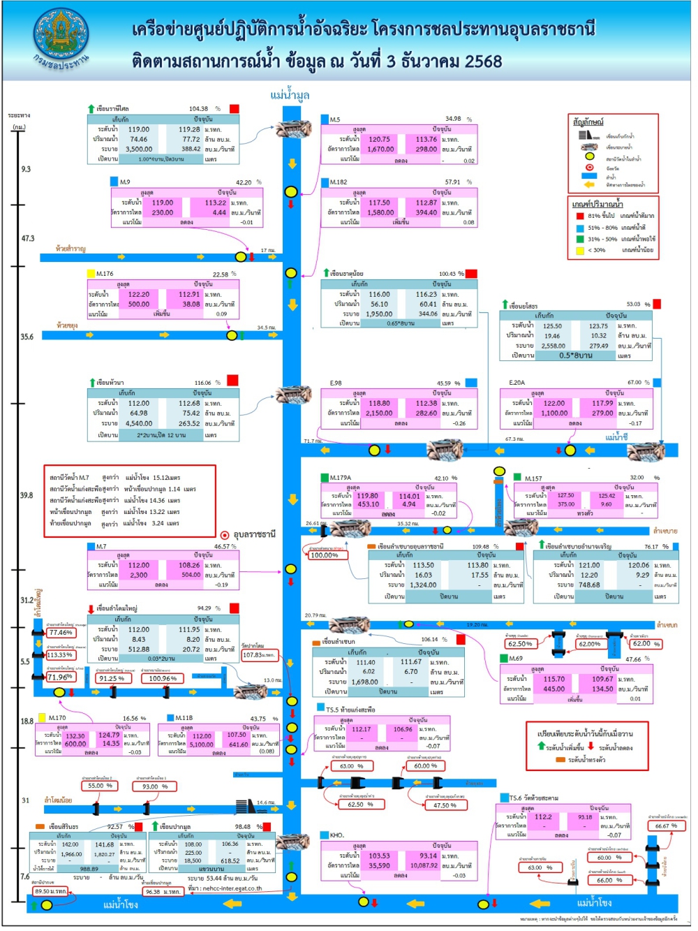 สรุปรายงานสถานการณ์น้ำในเขตจังหวัดอุบลราชธานี วันที่ 30 ธันวาคม 2568