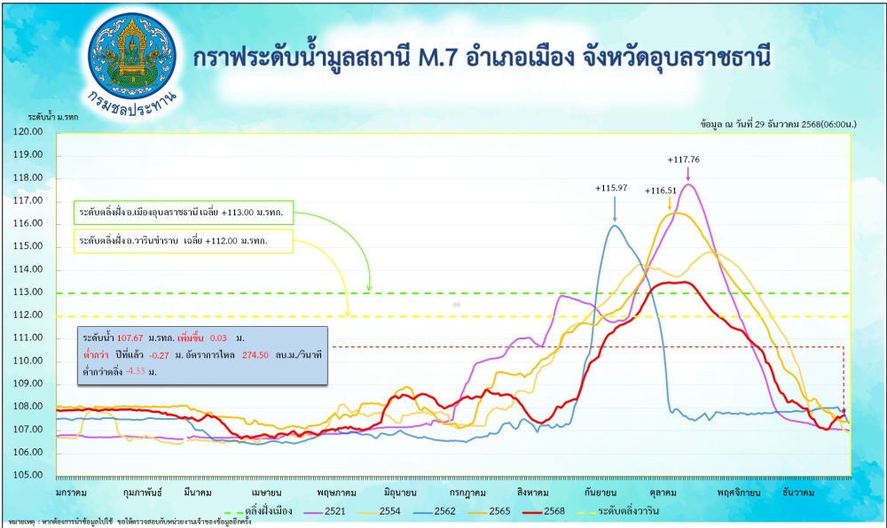 สรุปรายงานสถานการณ์น้ำในเขตจังหวัดอุบลราชธานี วันที่ 29 ธันวาคม 2568