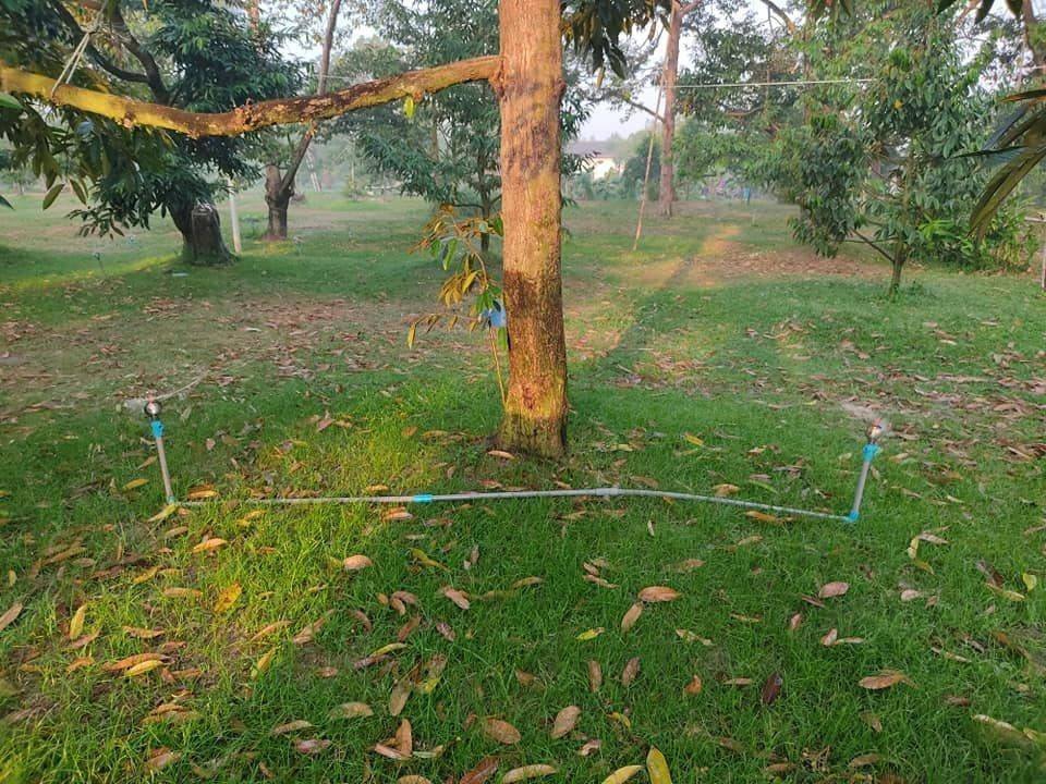 2.รักษาความชื้นในดิน โดยการคลุมดินด้วยเศษหญ้า หรือวัสดุคลุมโคนต้นทุเรียน