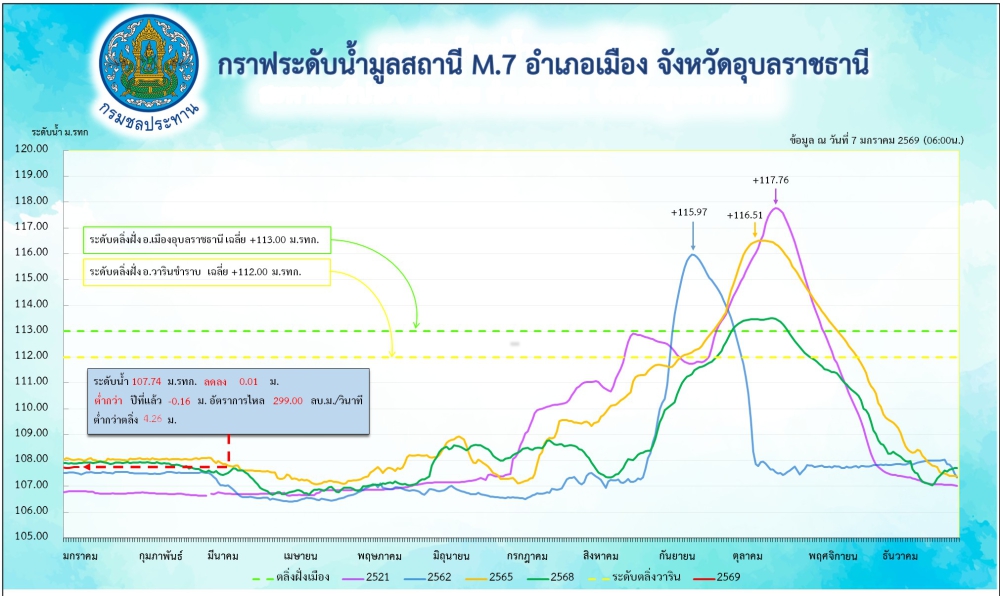 สรุปรายงานสถานการณ์น้ำในเขตจังหวัดอุบลราชธานี วันที่ 7 มกราคม 2569