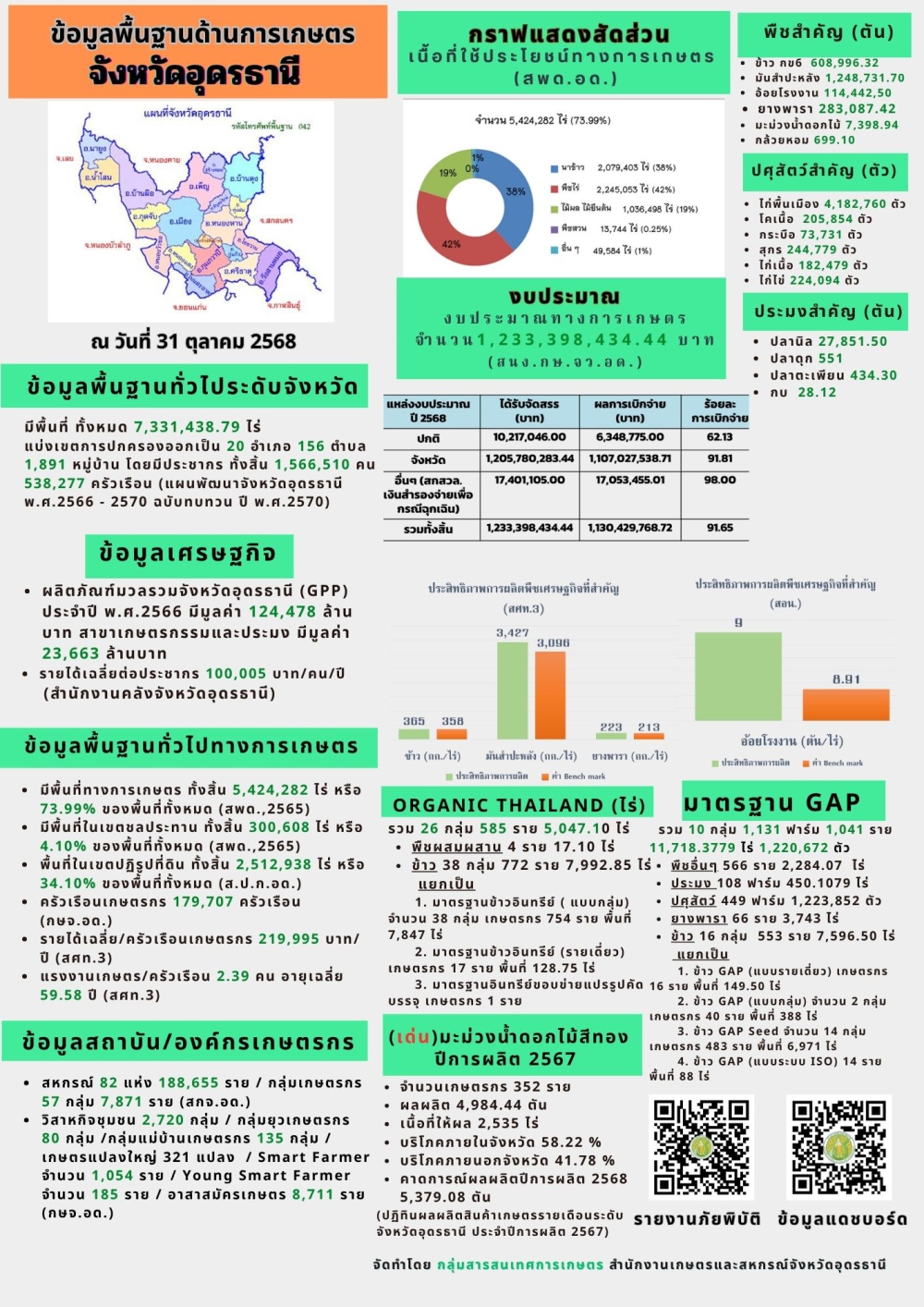 ข้อมูลพื้นฐานจังหวัดอุดรธานี สำหรับใช้สนับสนุนการตรวจราชการและครม.สัญจร เดือนตุลาคม 2568.