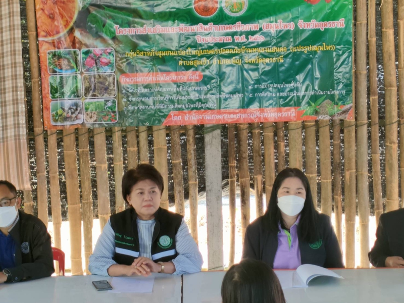 วันที่ 20 มกราคม 2566 เวลา 09.00 น. นางขนิษฐา โกวิทยากร เกษตรและสหกรณ์จังหวัดอุดรธานี พร้อมด้วยผู้แทนสำนักงานเกษตรจังหวัดอุดรธานี สำนักงานตรวจบัญชีสหกรณ์อุดรธานี สถานีพัฒนาที่ดินอุดรธานีศูนย์วิจัยและพัฒนาอาหารสัตว์อุดรธานี สำนักงานการปฏิรูปที่ดินจังหวัดอุดรธานี ศูนย์เทคโนโลยีเกษตรและนวัตกรรมจังหวัดอุดรธานี สาธารณสุขจังหวัดอุดรธานี พัฒนาชุมชนจังหวัดอุดรธานี องค์การบริหารส่วนตำบลเพ็ญ อำเภอเพ็ญ เกษตรกร ประชาชนและเจ้าหน้าที่เกี่ยวข้องเข้าร่วมประชุมการจัดเวทีวิเคราะห์พื้นที่และศักยภาพของเกษตรกร ภายใต้โครงการส่งเสริมและพัฒนาสินค้าเกษตรชีวภาพ(สมุนไพร) จังหวัดอุดรธานี ครั้งที่ 1/2566 ณ กลุ่มวิสาหกิจชุมชนแปลงใหญ่เกษตรปลอดภัยบ้านหนองแสนตอ ต.สุมเส้า อ.เพ็ญ จ.อุดรธานี