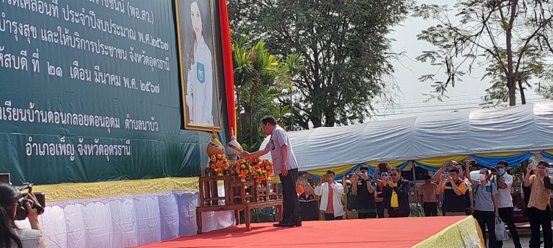 วันที่ 21 มีนาคม 2567 เวลา 09.00 น. นางศศิมาภรณ์ พันธโคตร เกษตรและสหกรณ์จังหวัดอุดรธานี ได้มอบกลุ่มช่วยเหลือเกษตรกรและโครงการพิเศษ ร่วมออกโครงการจังหวัดเคลื่อนที่ ประจำปีงบประมาณ พ.ศ.2567 (บำบัดทุกข์ บำรุงสุขและให้บริการประชาชนจังหวัดอุดรธานี) ณ โรงเรียนบ้านดอนกลอยดอนอุดม ตำบลนาบัว อำเภอเพ็ญ จังหวัดอุดรธานี โดยมีนายวันชัย คงเกษม ผู้ว่าราชการจังหวัดอุดรธานี เป็นประธานในพิธี ทั้งนี้ สำนักงานเกษตรและสหกรณ์จังหวัดอุดรธานี ได้ประชาสัมพันธ์แนวทางการช่วยเหลือเกษตรกรและผู้ยากจนแก่เกษตรกรที่สนใจ ให้คำแนะนำกองทุนหมุนเวียนเพื่อการกู้ยืมแก่เกษตรกรผู้ยากจน กองทุนสงเคราะห์เกษตรกร การทำฝนหลวง และการหยุดเผาในพื้นที่เกษตรเพื่อลดหมอกควัน ฝุ่นละออง PM 2.5 ซึ่งมีเกษตรกรและประชาชน ร่วมงาน จำนวน 100 ราย