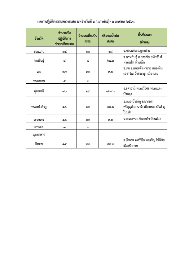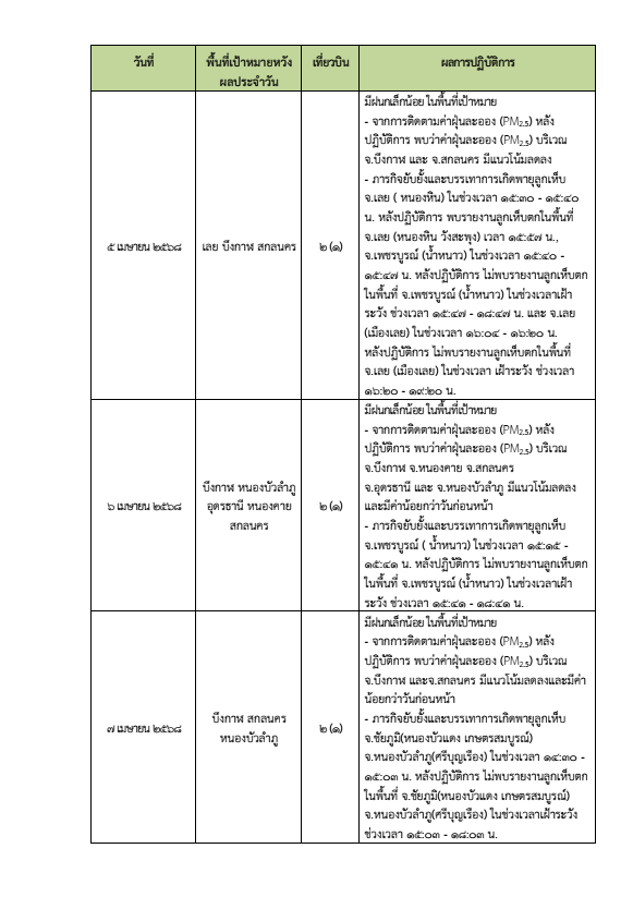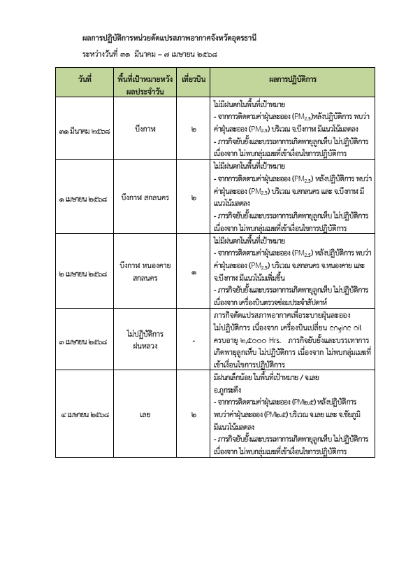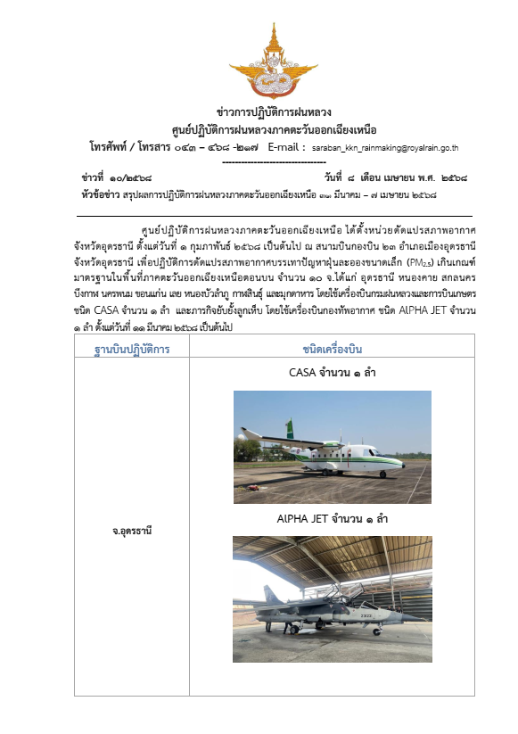 รายงานสรุปผลการปฏิบัติการดัดแปรสภาพอากาศ ฉบับที่ 10/2568 ระหว่างวันที่ 31 มีนาคม - 7 เมษายน 2568