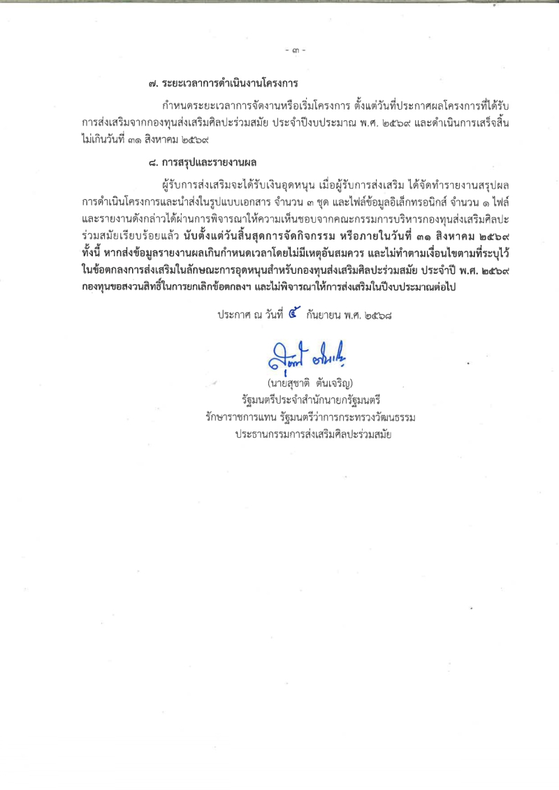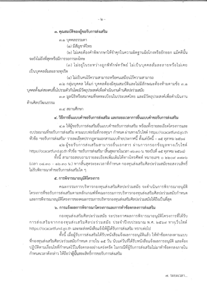 ประกาศคณะกรรมการส่งเสริมศิลปะร่วมสมัย เรื่อง การขอรับการส่งเสริมจากกองทุนส่งเสริมศิลปะร่วมสมัย ประจำปีงบประมาณ พ.ศ.2569