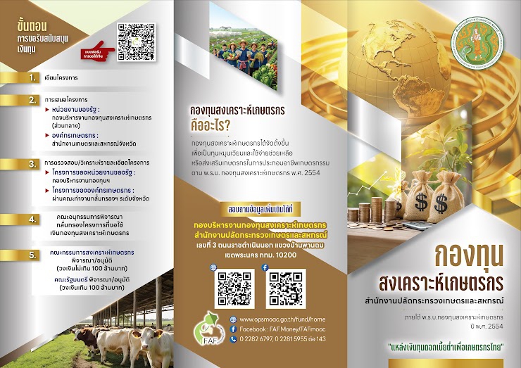 สอบถามข้อมูลเพิ่มเติมได้ที่ กองบริหารงานกองทุนสงเคราะห์เกษตรกร สำนักงานปลัดกระทรวงเกษตรและสหกรณ์ โทรศัพท์ 02 282 6797, 02 281 5955 ต่อ 143