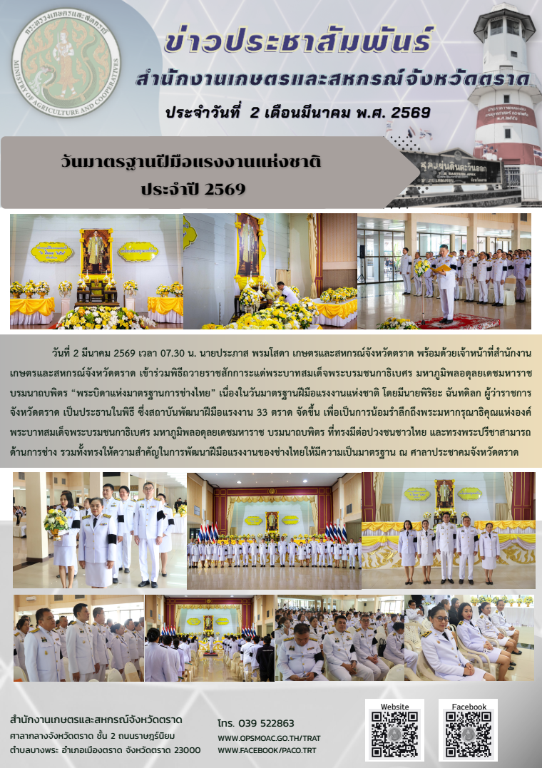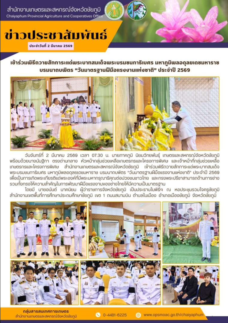 จดหมายข่าวประชาสัมพันธ์สำนักงานเกษตรและสหกรณ์จังหวัด ประจำเดือนมีนาคม 2569