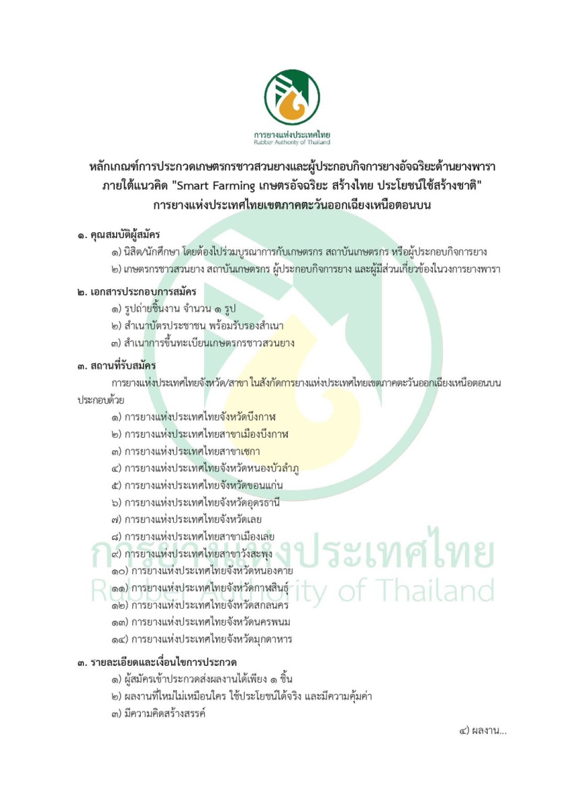 ขอเชิญส่งผลงานเข้าร่วมประกวดนวัตกรรมอัจฉริยะด้านยางพารา ประจำปี 2569 ภายใต้แนวคิด "Smart Farming เกษตรอัจฉริยะ สร้างไทย ประโยชน์ใช้สร้างชาติ"