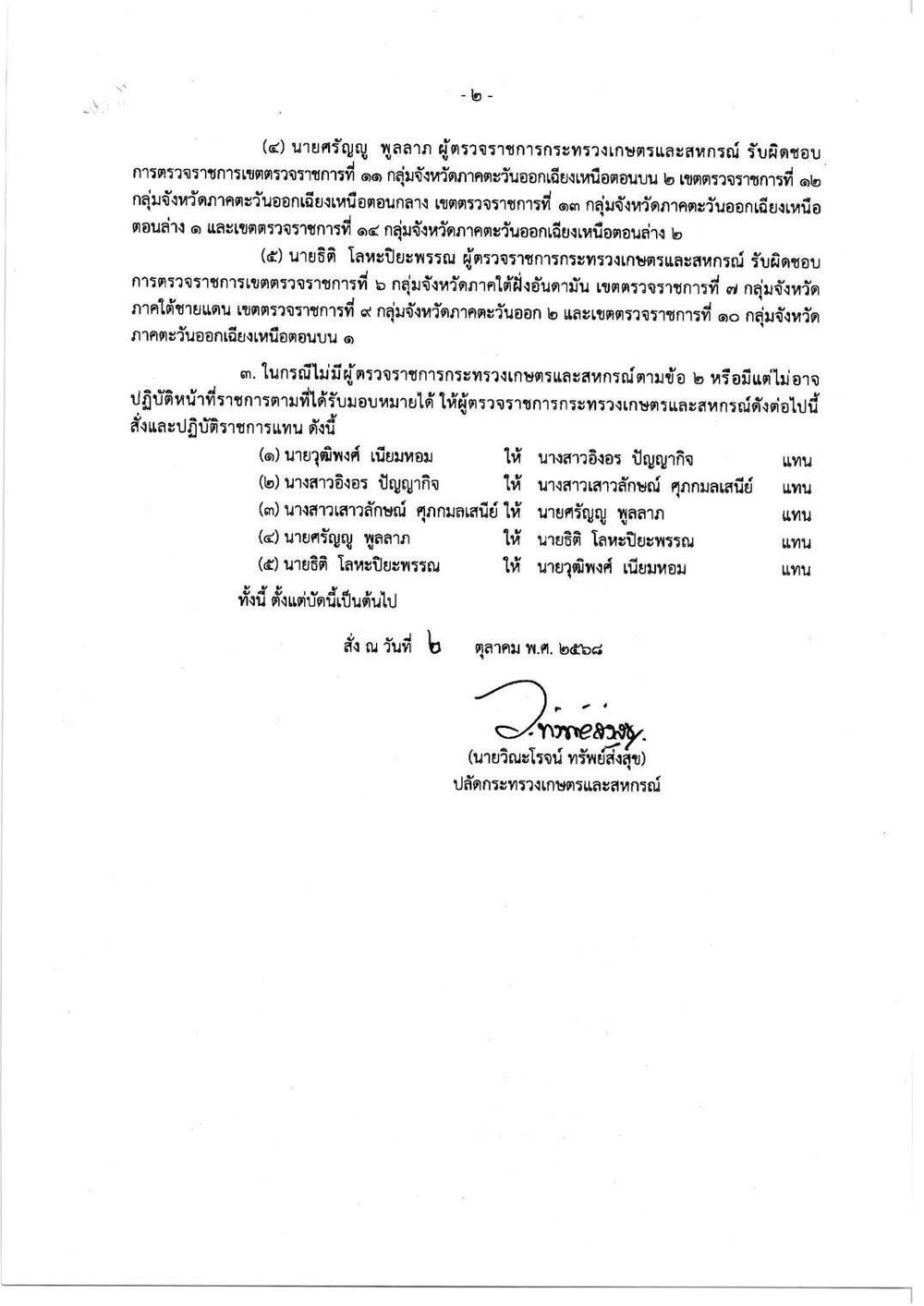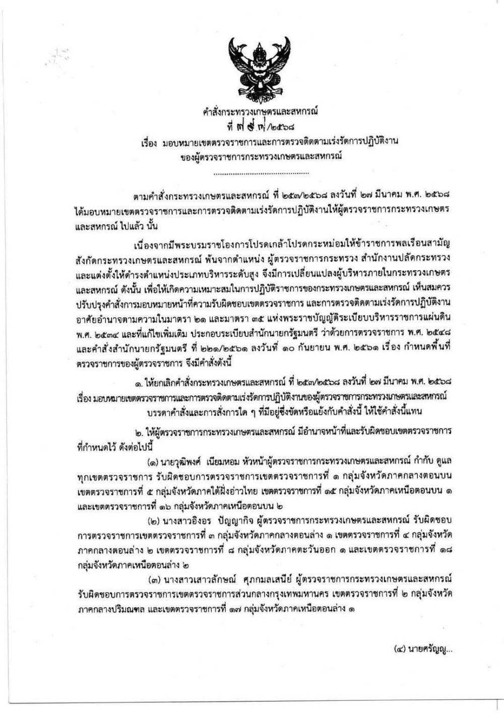 คำสั่งกระทรวงเกษตรและสหกรณ์ ที่ 797/2568 ลงวันที่ 2 ตุลาคม 2568 เรื่อง มอบหมายเขตตรวจราชการ และการตรวจติดตามเร่งรัดการปฎิบัติงานของผู้ตรวจราชการกระทรวงเกษตรและสหกรณ์