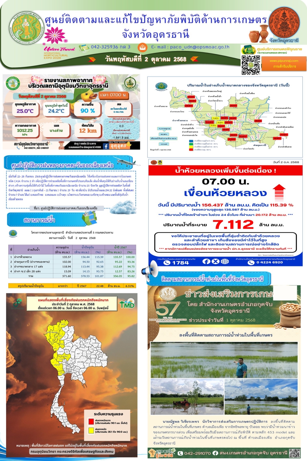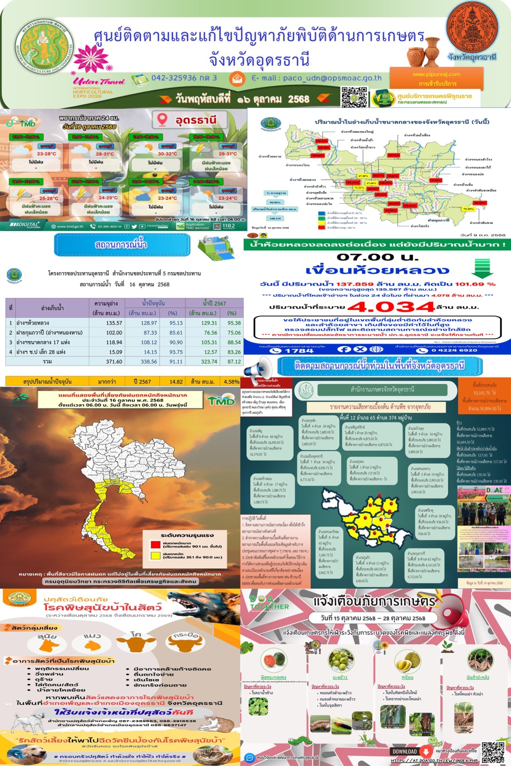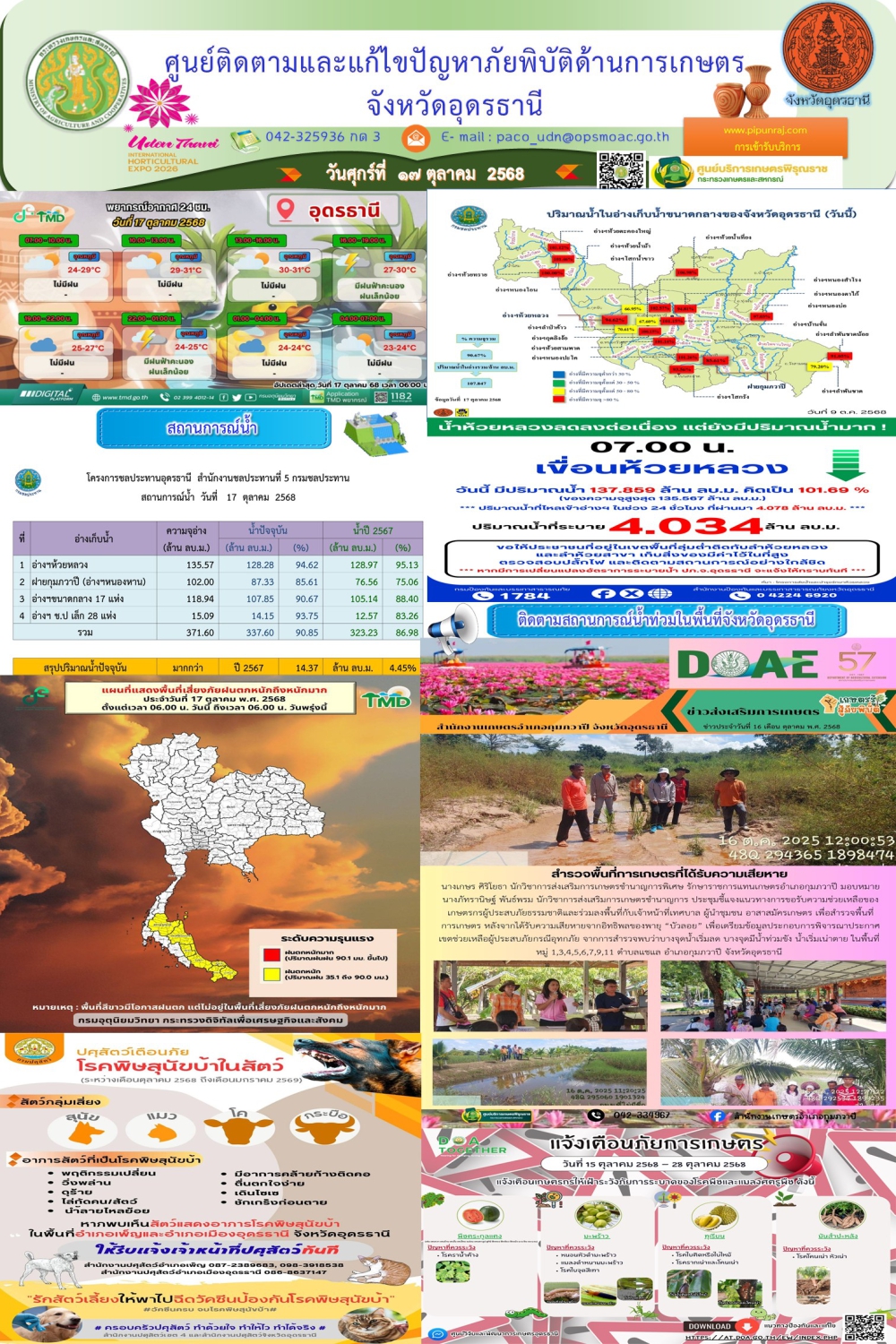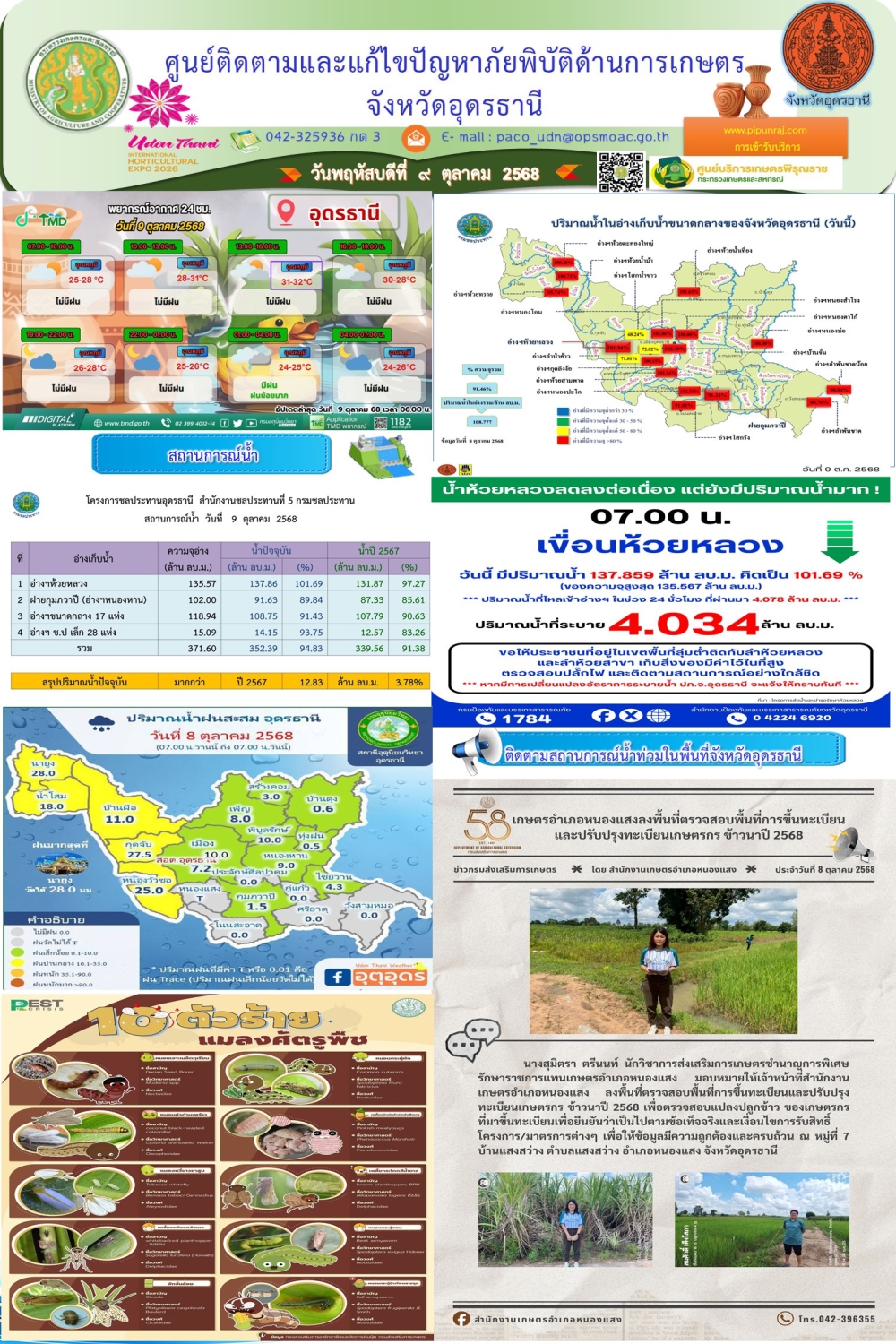 รายงานศูนย์ติดตามและแก้ไขปัญหาภัยพิบัติด้านการเกษตร จังหวัดอุดรธานี เดือนตุลาคม 2568