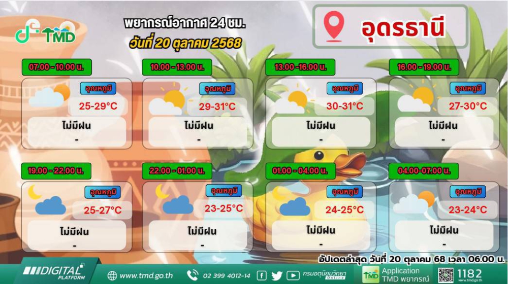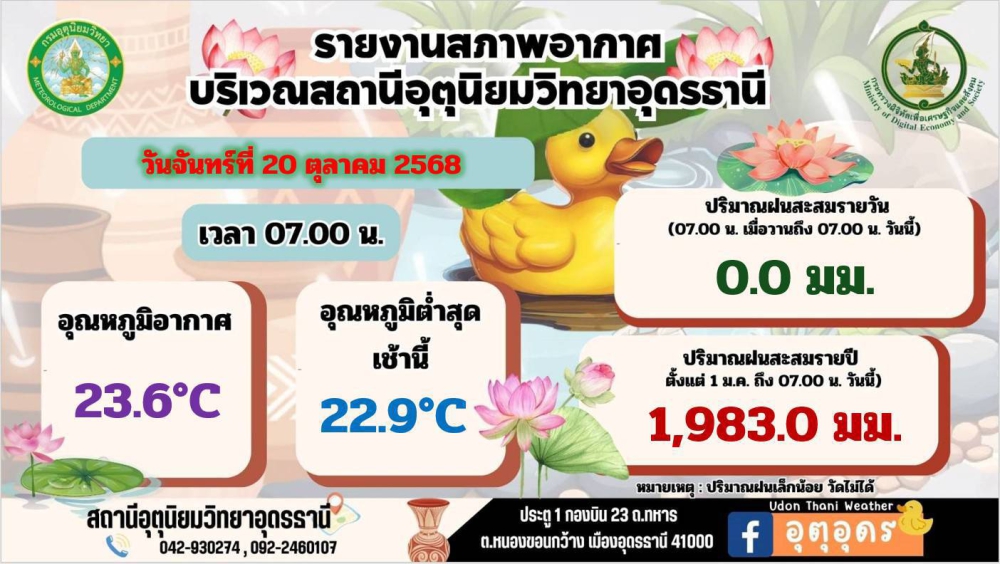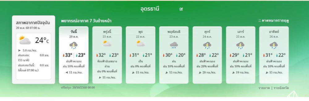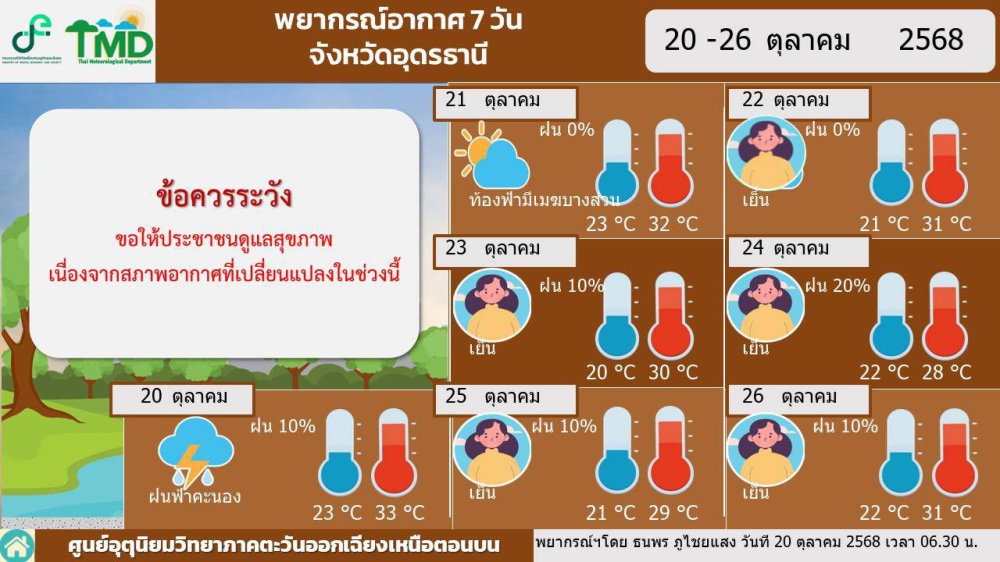 พยากรณ์อากาศจังหวัดอุดรธานี 21 ตุลาคม 2568