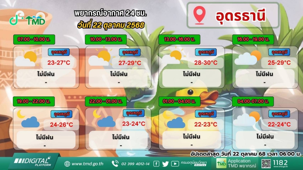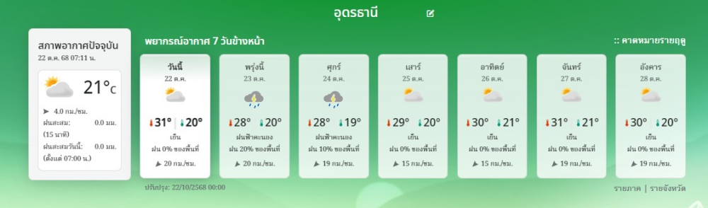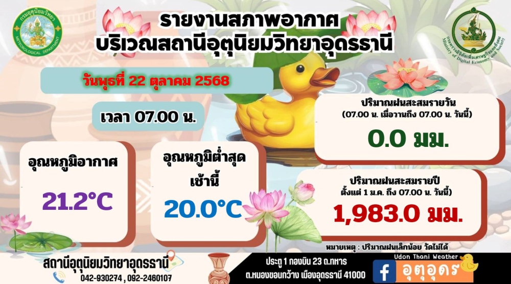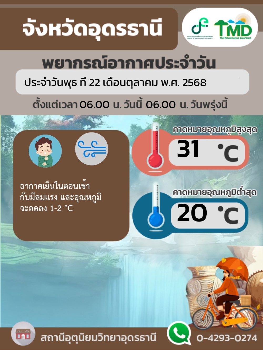 พยากรณ์อากาศจังหวัดอุดรธานี 22 ตุลาคม 2568