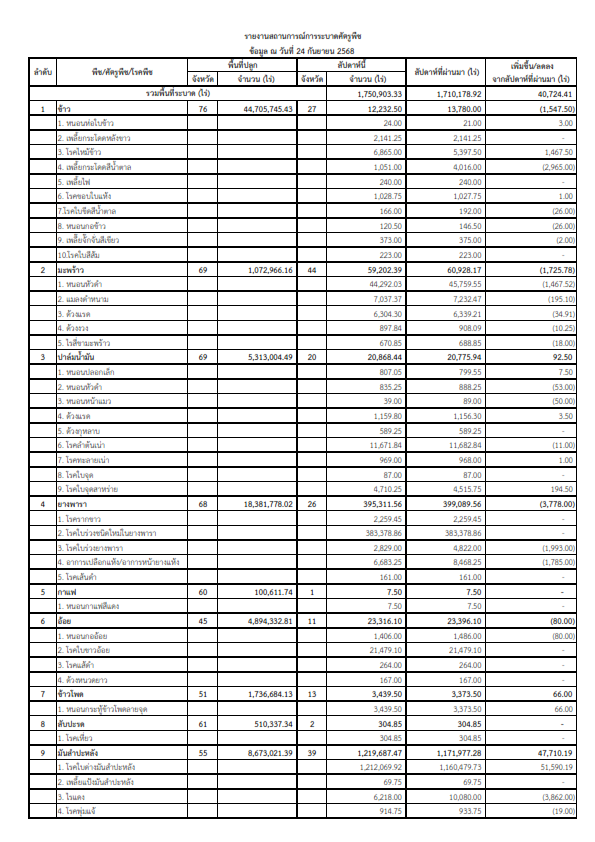 รายงานสถานการณ์การระบาดศัตรูพืช ณ วันที่ 24 กันยายน 2568