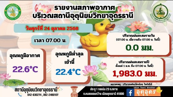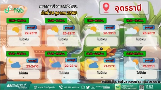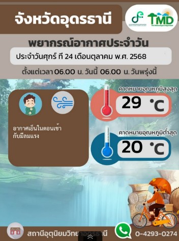 พยากรณ์อากาศจังหวัดอุดรธานี 24 ตุลาคม 2568