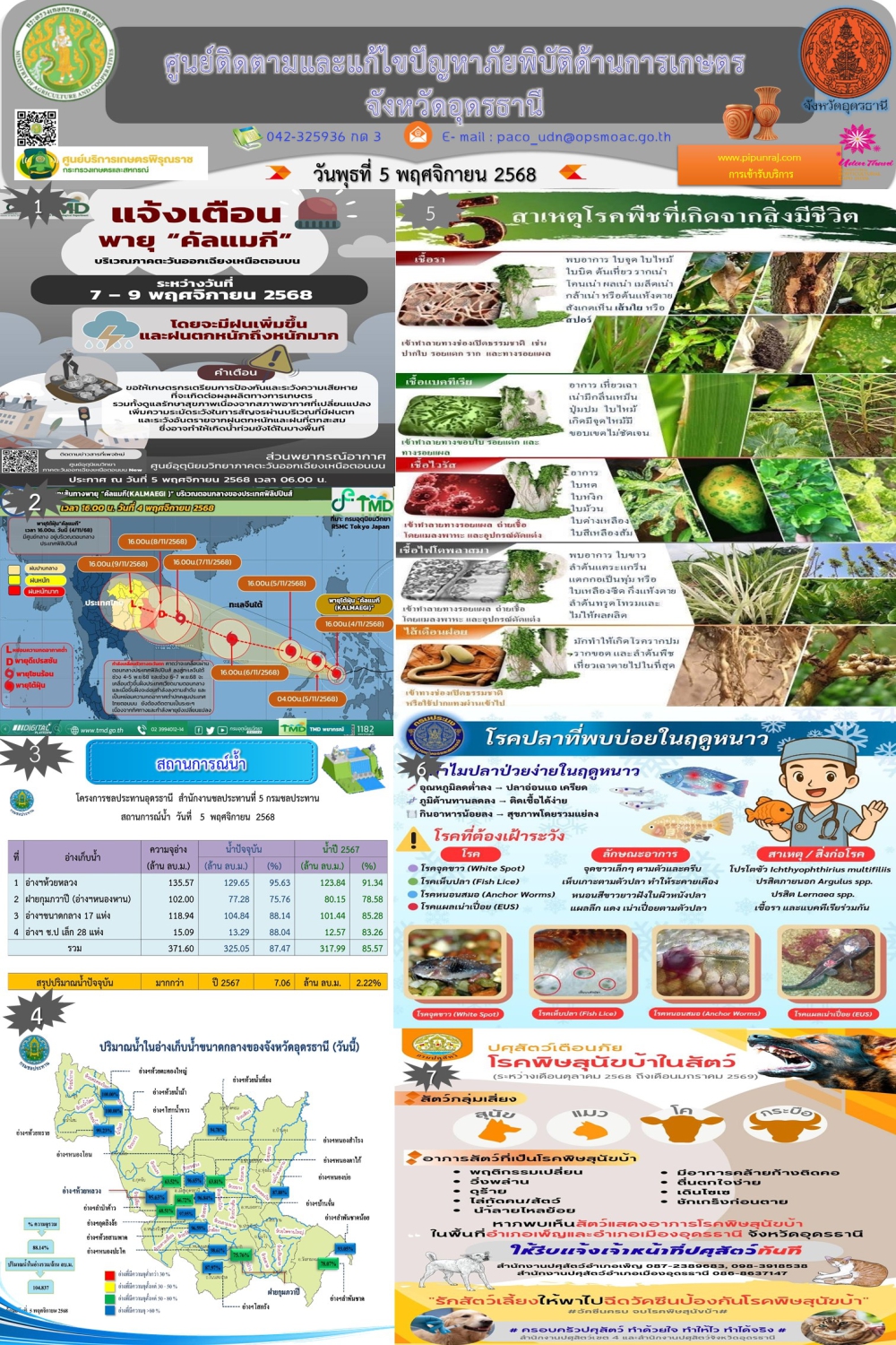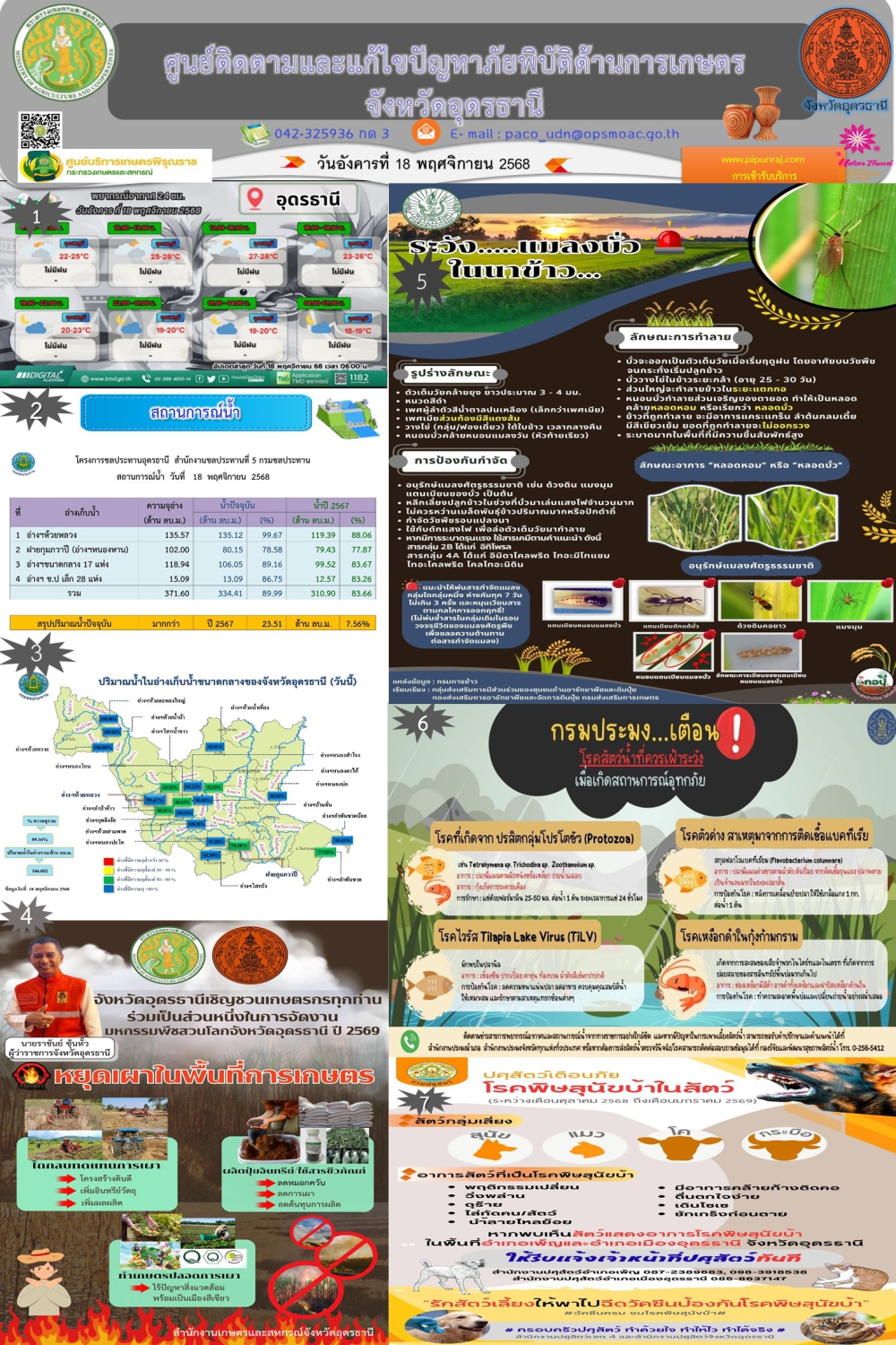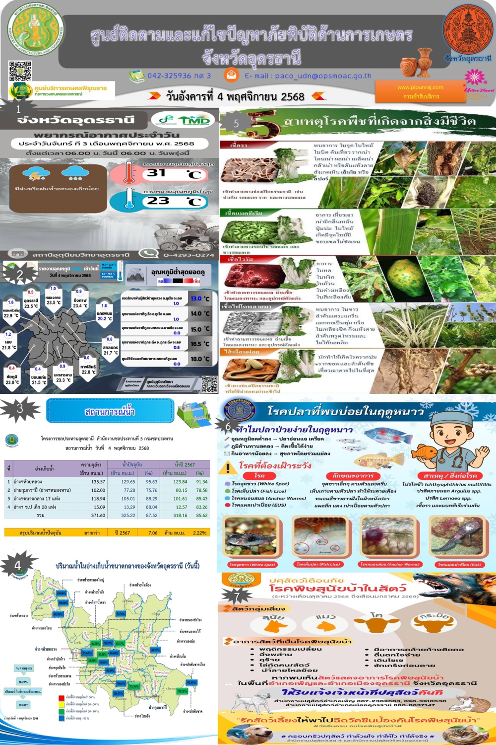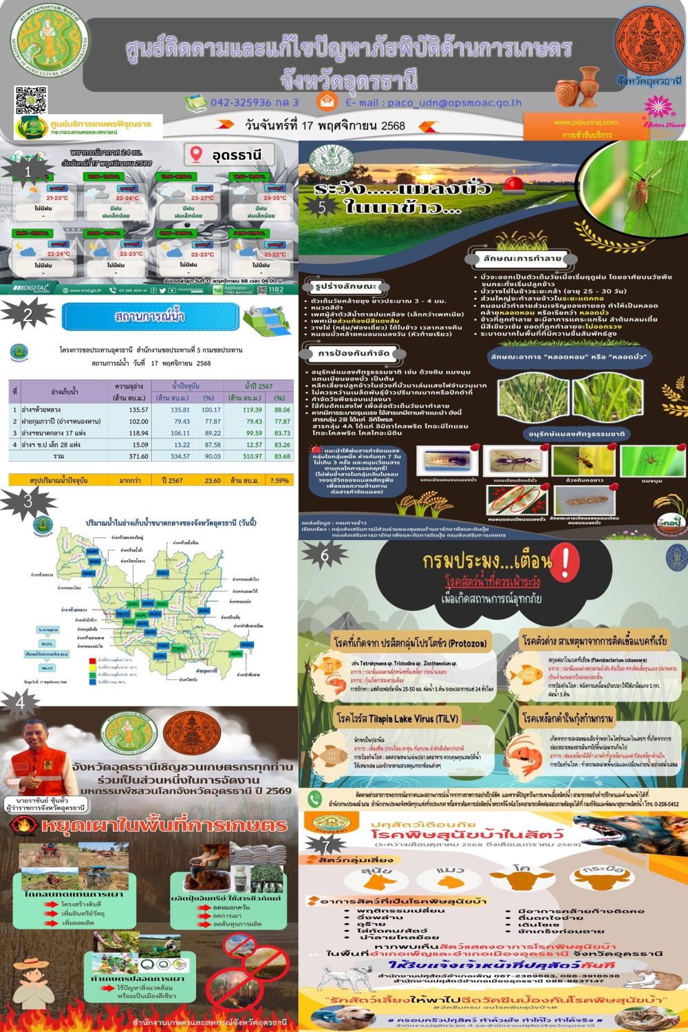 รายงานศูนย์ติดตามและแก้ไขปัญหาภัยพิบัติด้านการเกษตร จังหวัดอุดรธานี ประจำเดือนพฤศจิกายน 2568
