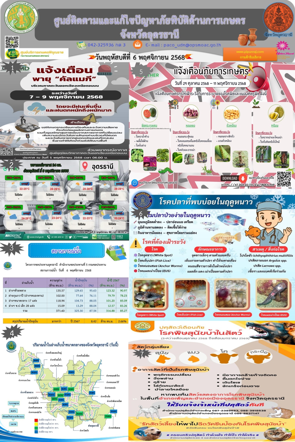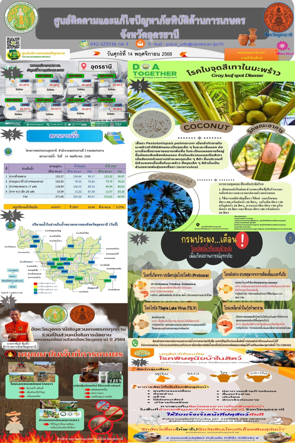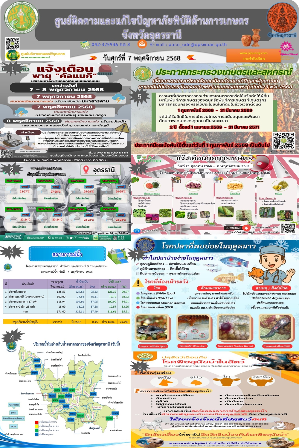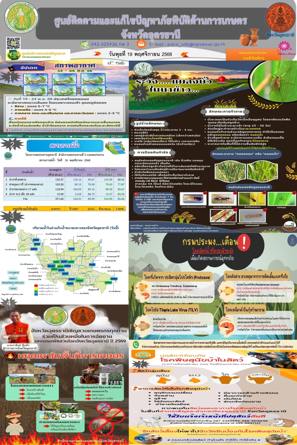 รายงานศูนย์ติดตามและแก้ไขปัญหาภัยพิบัติด้านการเกษตร จังหวัดอุดรธานี ประจำเดือนพฤศจิกายน 2568