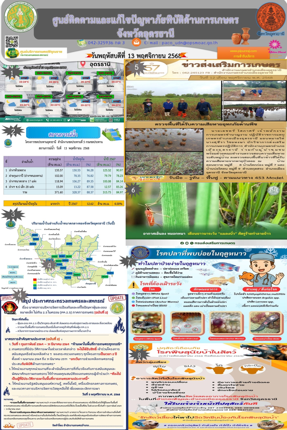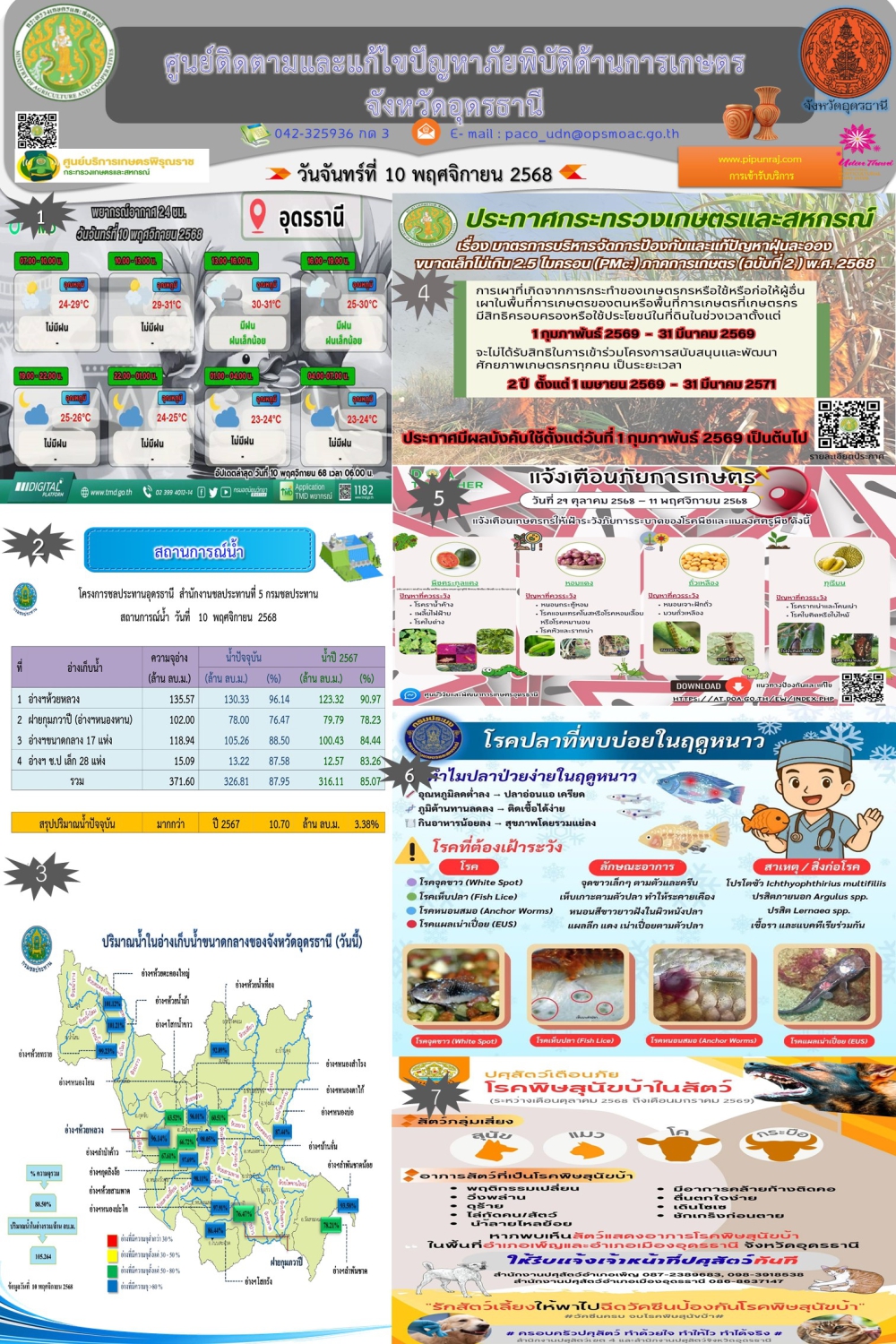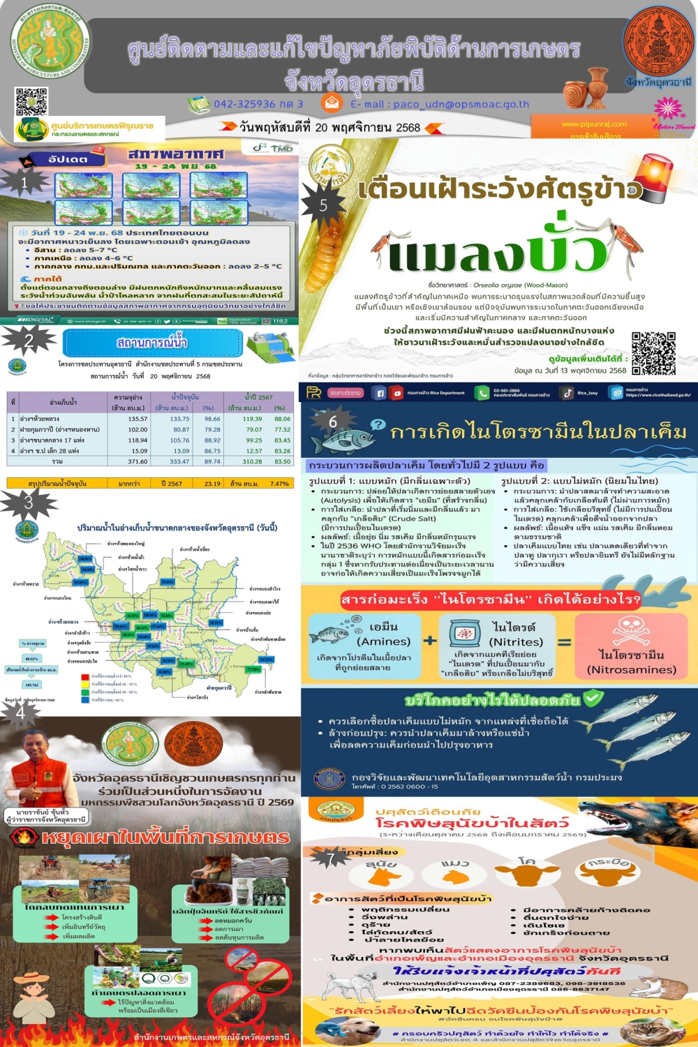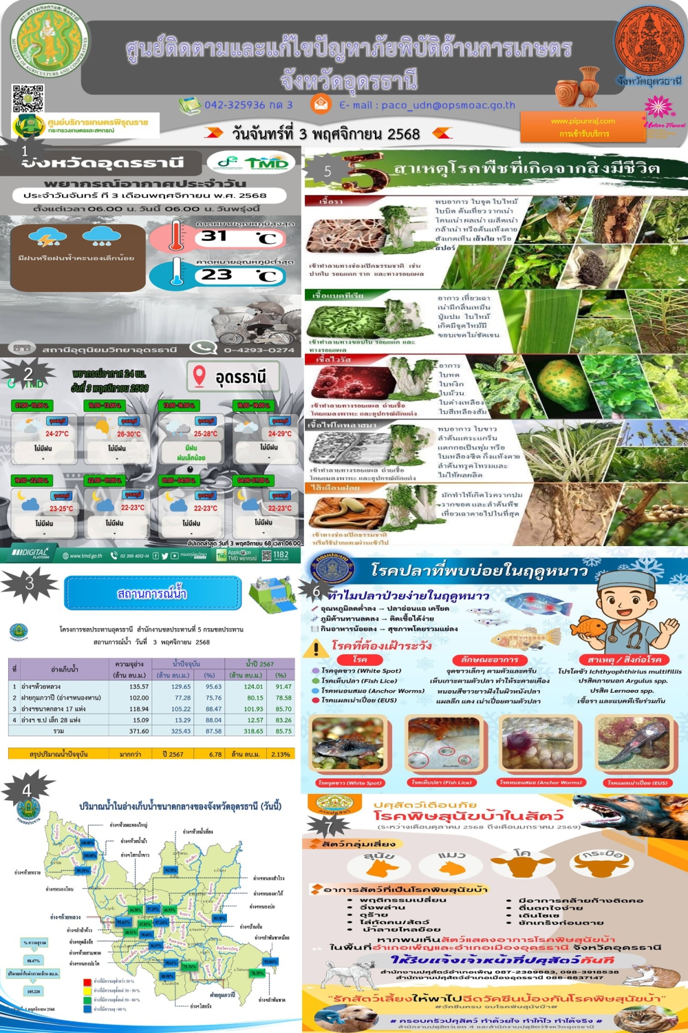รายงานศูนย์ติดตามและแก้ไขปัญหาภัยพิบัติด้านการเกษตร จังหวัดอุดรธานี ประจำเดือนพฤศจิกายน 2568