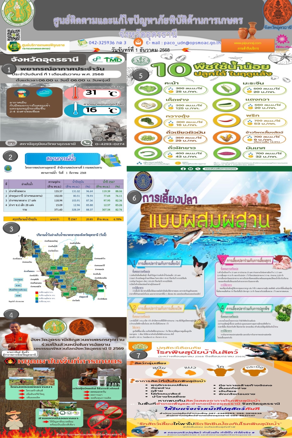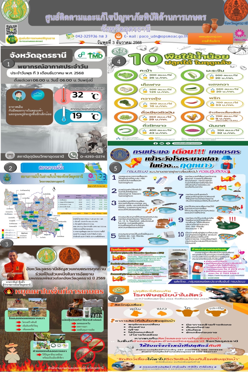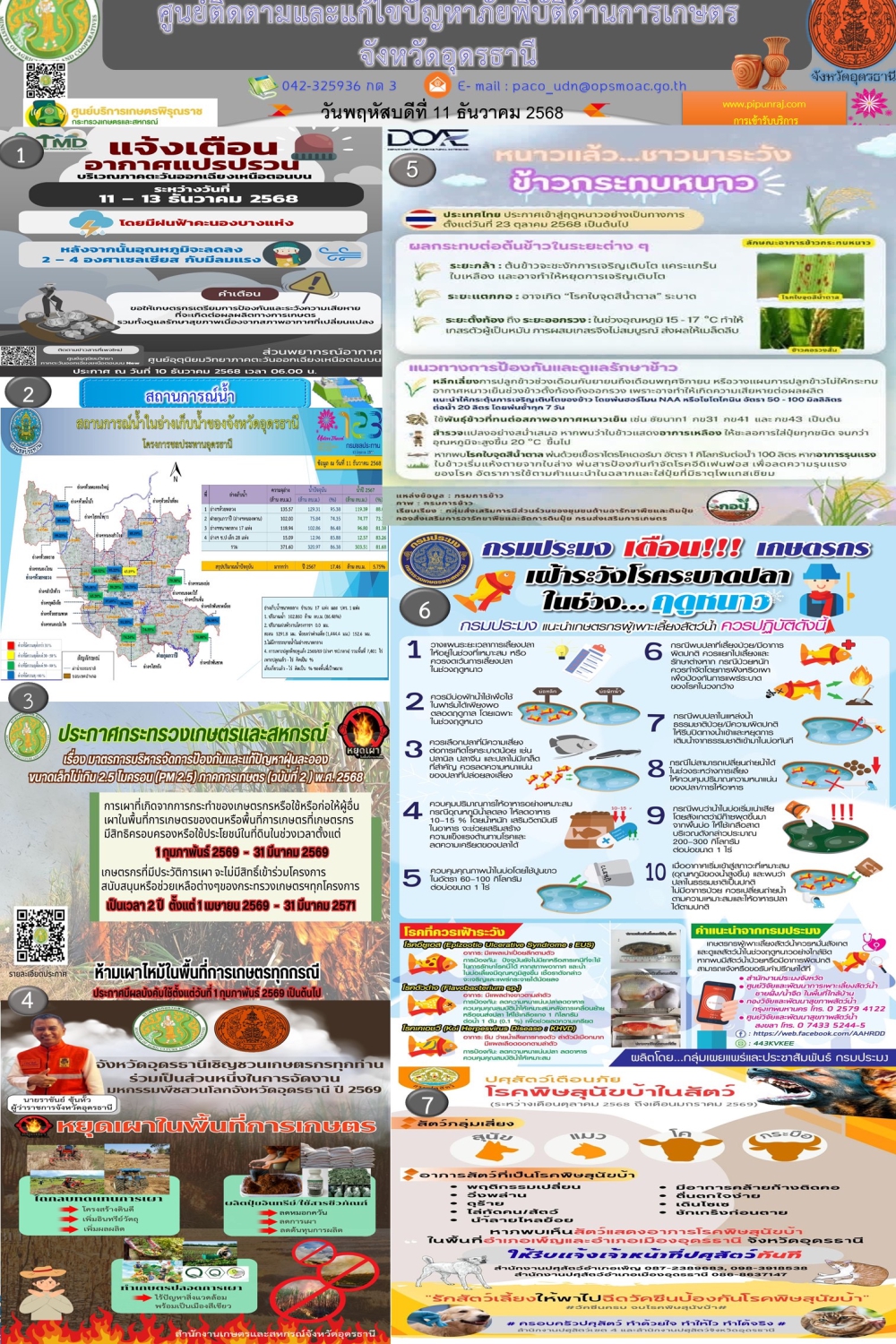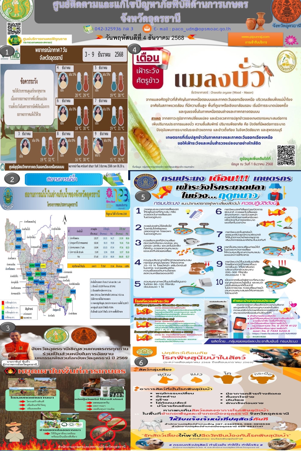 รายงานศูนย์ติดตามและแก้ไขปัญหาภัยพิบัติด้านการเกษตร จังหวัดอุดรธานี ประจำเดือนธันวาคม 2568