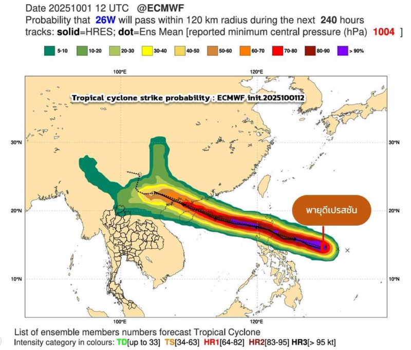 พายุนี้จะไม่เคลื่อนเข้าสู่ประเทศไทย ยังไม่ควรตื่นตระหนกติดตามข่าวพยากรณ์อากาศและประกาศจากกรมอุตุนิยมวิทยาเป็นระยะๆ