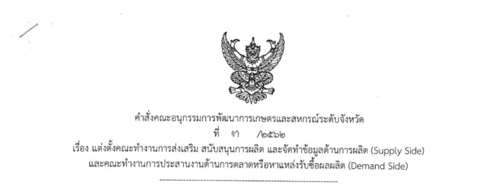 คำสั่งแต่งตั้งคณะทำงานการส่งเสริมสนับสนุนการตลาดนำการผลิต