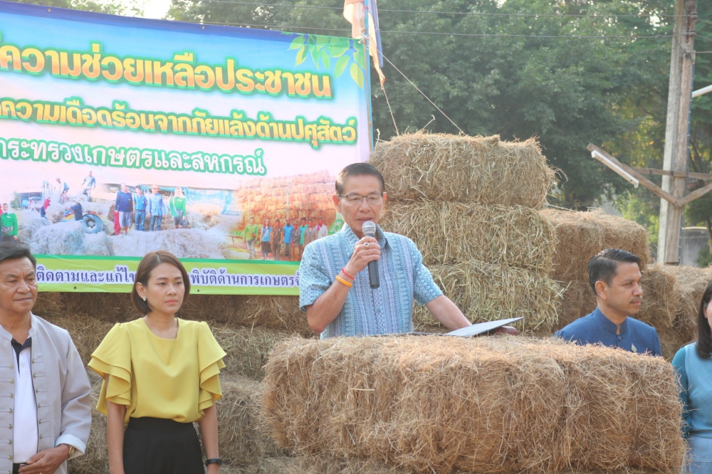 วันที่ ๑๑ มีนาคม ๒๕๖3 สำนักงานเกษตรและสหกรณ์จังหวัดอุตรดิตถ์ ร่วมพิธีมอบเสบียงอาหารสัตว์ (หญ้าแห้ง) ณ วัดน้ำหมัน ตำบลน้ำหมัน อำภอท่าปลา จังหวัดอุตรดิตถ์ โดยมีนายธนากร อึ้งจิตรไพศาล ผู้ว่าราชการจังหวัดอุตรดิตถ์ เป็นประธานในพิธีมอบเสบียงอาหารสัตว์ (หญ้าแห้ง) ช่วยเหลือเกษตรกรผู้เลี้ยงสัตว์ที่ประสบปัญหาภัยแล้งในพื้นที่ตำบลน้ำหมัน อำเภอท่าปลา จังหวัดอุตรดิตถ์ โดยสัตวแพทย์หญิงกิตติวดี โชติปรายน ปศุสัตว์จังหวัดอุตรดิตถ์ กล่าวว่า ตำบลน้ำหมัน มีเกษตรกรผู้เลี้ยงสัตว์ประสบปัญหาภัยแล้งอย่างรุนแรง ส่งผลให้ทุ่งหญ้าเลี้ยงสัตว์ของเกษตรได้รับความเสียหาย จำนวน 221 ราย โค จำนวน 1,369 ตัว กระบือ 239 ตัว รวมเกือบ 1,608 ตัว จึงได้ประสานขอสนับสนุนหญ้าแห้ง จากศูนย์วิจัยและพัฒนาอาหารสัตว์สุโขทัย จำนวน 1,000 ฟ่อน หรือ 20,000 กิโลกรัม เพื่อช่วยเหลือบรรเทาความเดือดร้อนแก่เกษตรกรผู้ประสบภัย ซึ่งหากสัตว์เลี้ยงได้รับการดูแลรักษามีอาหารที่เพียงพอจะมีร่างกายที่สมบูรณ์และหากขายก็จะได้ราคาที่สูงตามมาอีกด้วย จังหวัดอุตรดิตถ์มีรากฐานการพัฒนาจากภาคเกษตรกรรมตั้งแต่อดีตกาล ประชากรส่วนใหญ่ประกอบอาชีพ เกษตรกรรม กสิกรรม เลี้ยงสัตว์และการประมง แบบผสมผสานสามารถยึดเป็นอาชีพที่สร้างรายได้แก่ครอบครัว ปัจจุบันรายได้หลักของประชากรส่วนใหญ่ ยังคงมาจากภาคเกษตรกรรมและมีแนวโน้มไปสู่การผลิตขนาดใหญ่ (large scale fam) ที่สามารถให้ผลผลิตที่สูงขึ้น ประกอบกับสภาพการณ์ในปัจจุบันปริมาณพืชอาหารสัตว์ ไม่เพียงพอต่อการเลี้ยงสัตว์ ดังนั้น ในเชิงยุทธศาสตร์ การพัฒนาด้านปศุสัตว์ในจังหวัดอุตรดิตถ์ จึงมีความจำเป็นต้องใช้วัสดุที่เหลือจากภาคการเกษตร เช่น ฟางข้าวเลี้ยงสัตว์ในช่วงที่อาหารสัตว์ชนิดอื่นขาดแคลนในช่วงฤดูแล้ง