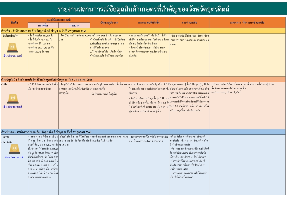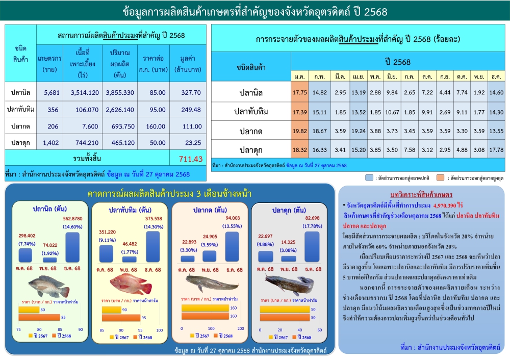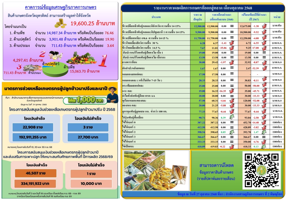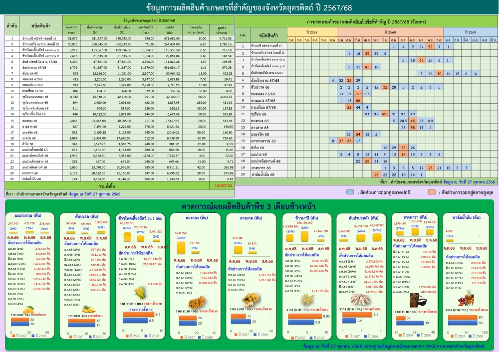 ข้อมูลสถานการณ์สินค้าเกษตรที่สำคัญของจังหวัดอุตรดิตถ์ ประจำเดือนตุลาคม 2568