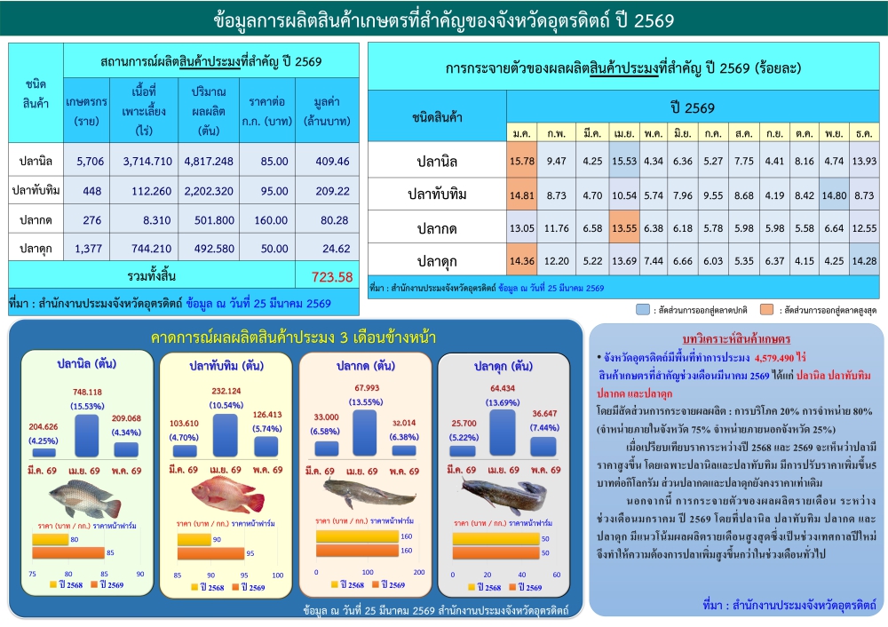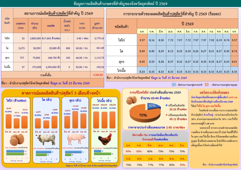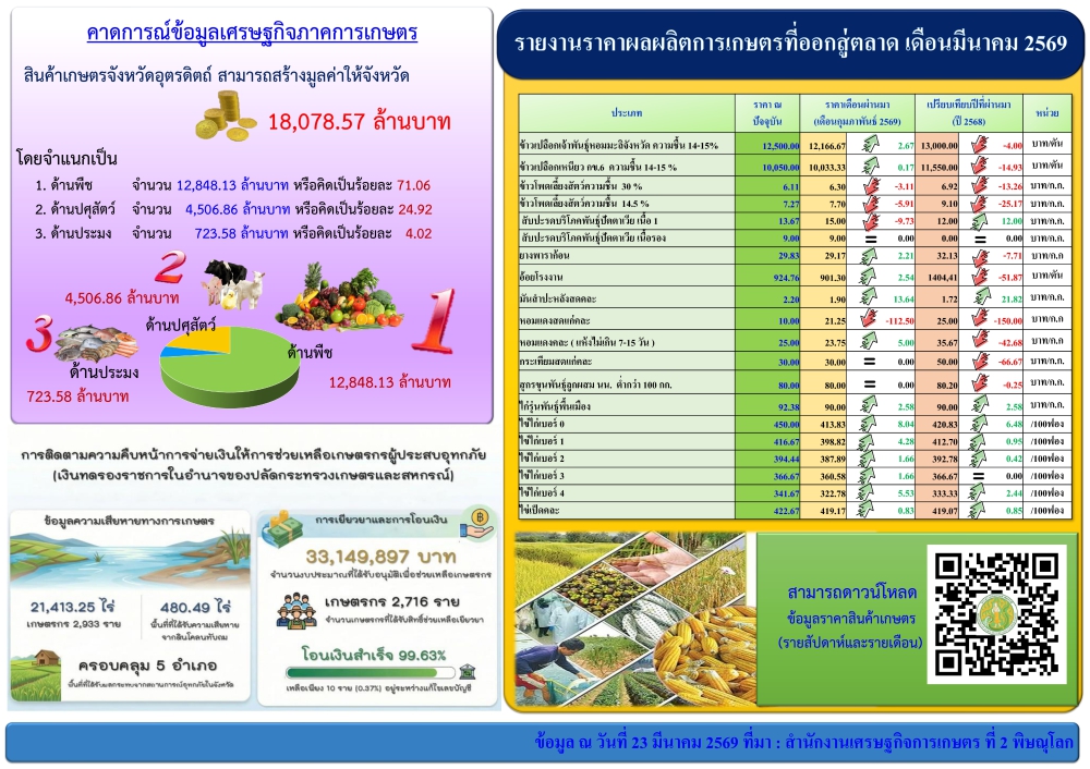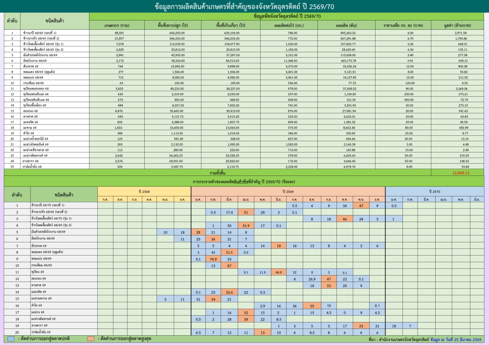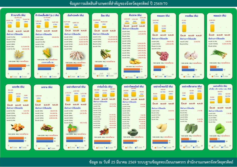 ข้อมูลสถานการณ์สินค้าเกษตรที่สำคัญของจังหวัดอุตรดิตถ์ ประจำเดือนมีนาคม 2569