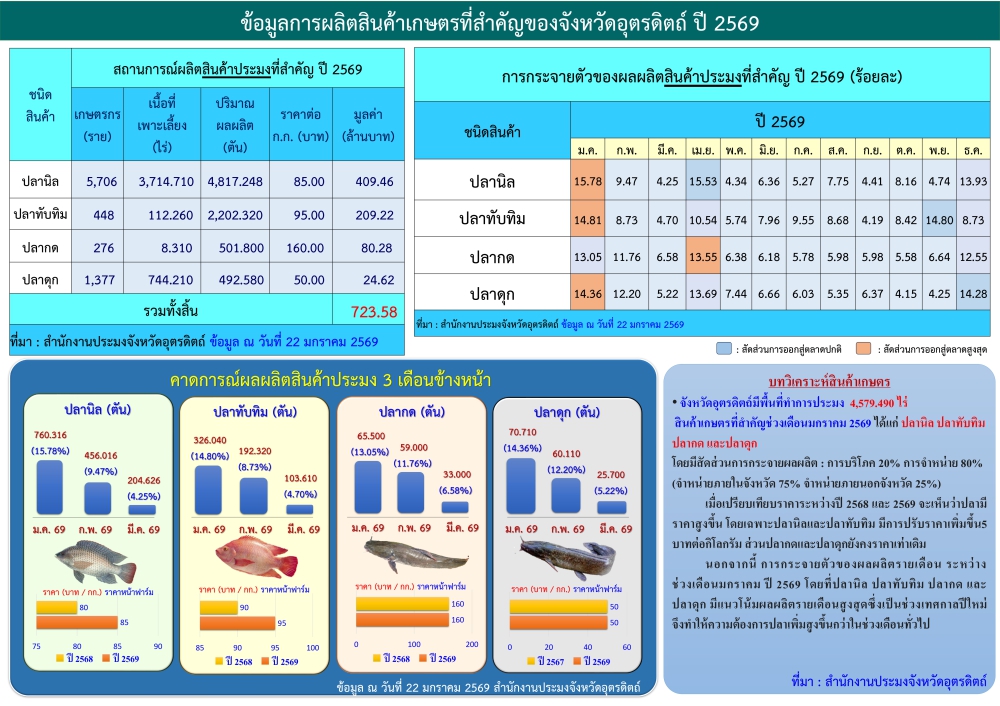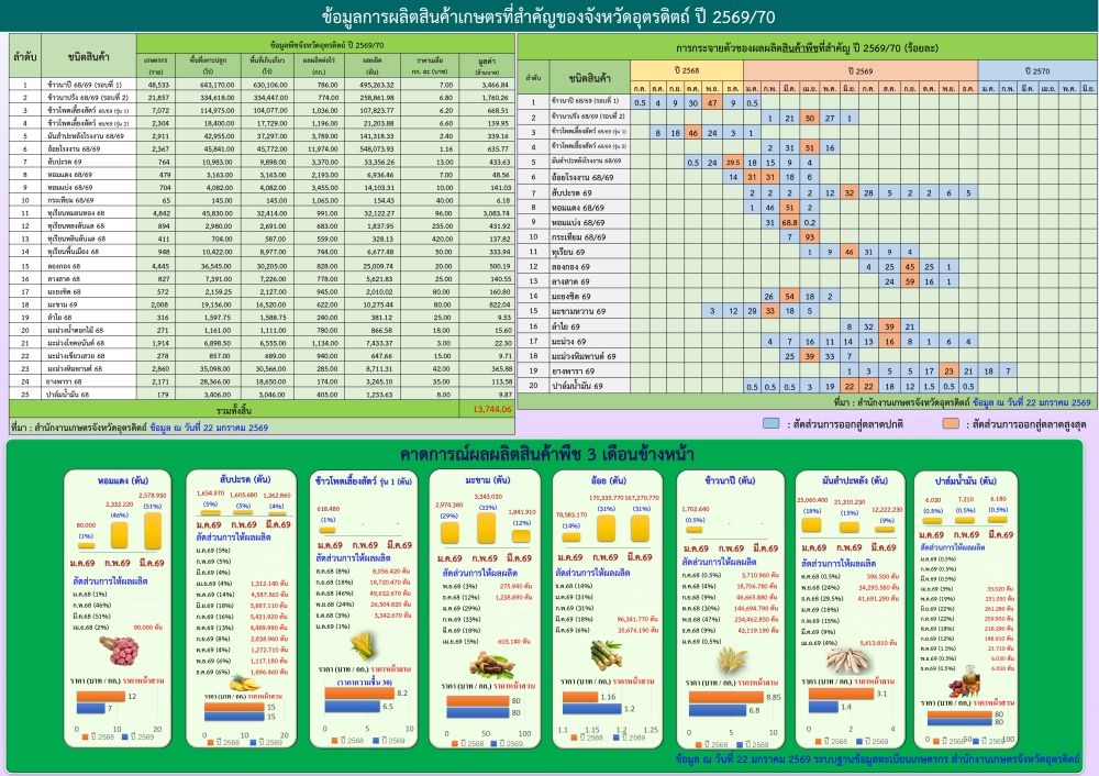 ข้อมูลสถานการณ์สินค้าเกษตรที่สำคัญของจังหวัดอุตรดิตถ์ ประจำเดือนมกราคม 2569