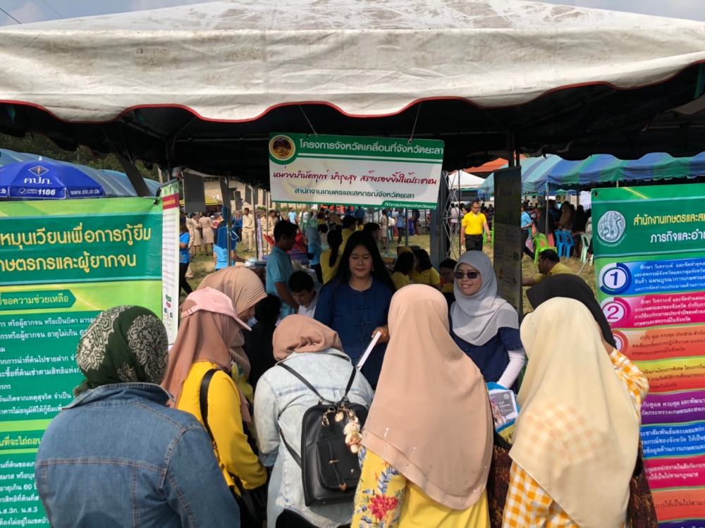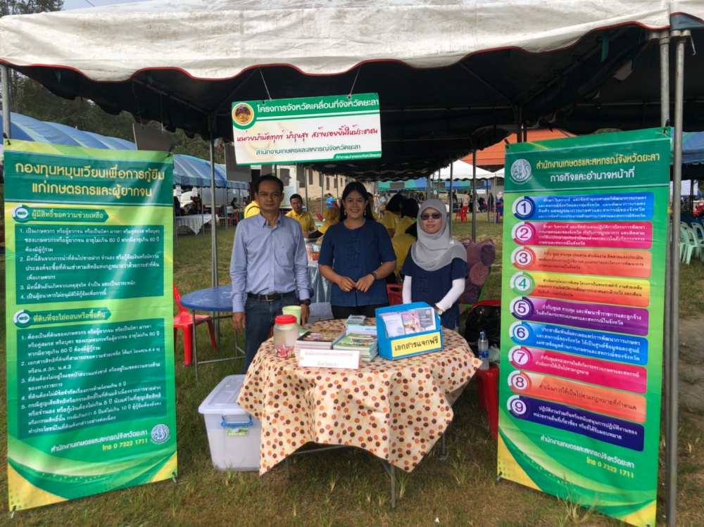 วันที่ 12 กันยายน 2562 จ่าเอกเฉลิมพล ญาณวิสุทธิสกุล เกษตรและสหกรณ์จังหวัดยะลา มอบหมายให้ นายสมพร สมบูรณ์นักวิเคราะห์นโยบายและชำนาญการ พร้อมด้วย เจ้าหน้าที่สำนักงานเกษตรและสหกรณ์จังหวัดยะลา ร่วมออกบริการประชาชนในโครงการจังหวัดเคลื่อนที่เพื่อ “บำบัดทุกข์ บำรุงสุข สร้างรอยยิ้มให้ประชาชน” ณ ลานกีฬาธารมะลิ หมู่ที่ 4ตำบลอัยเยอร์เวง อำเภอเบตง จังหวัดยะลาโดยมี นายนิมะห์ มะกาเจ รองผู้ว่าราชการจังหวัดยะลาเป็นประธานในพิธี ในการนี้มีผู้บังคับหน่วยกำลังทหาร ตำรวจ หัวหน้าส่วนราชการในจังหวัดยะลา ผู้นำท้องที่/ท้องถิ่น/ศาสนา ข้าราชการหน่วยงานต่างๆ นักเรียน และประชาชน เข้าร่วมกิจกรรมเป็นจำนวนมาก