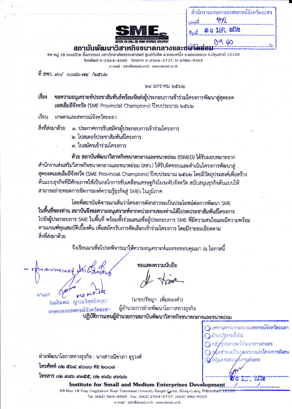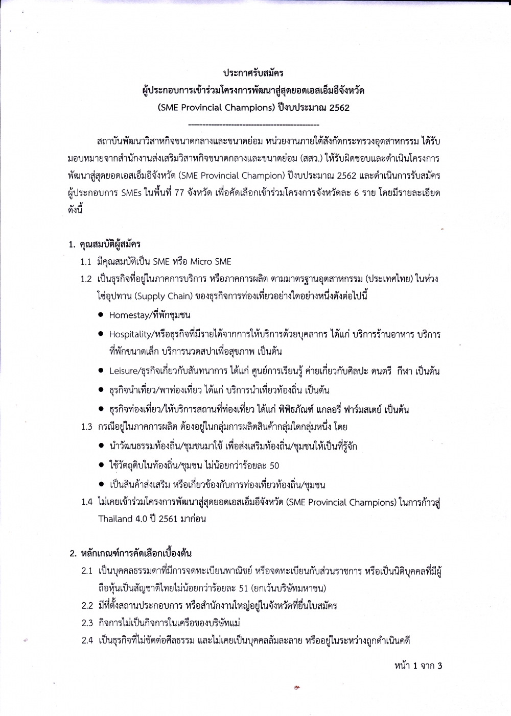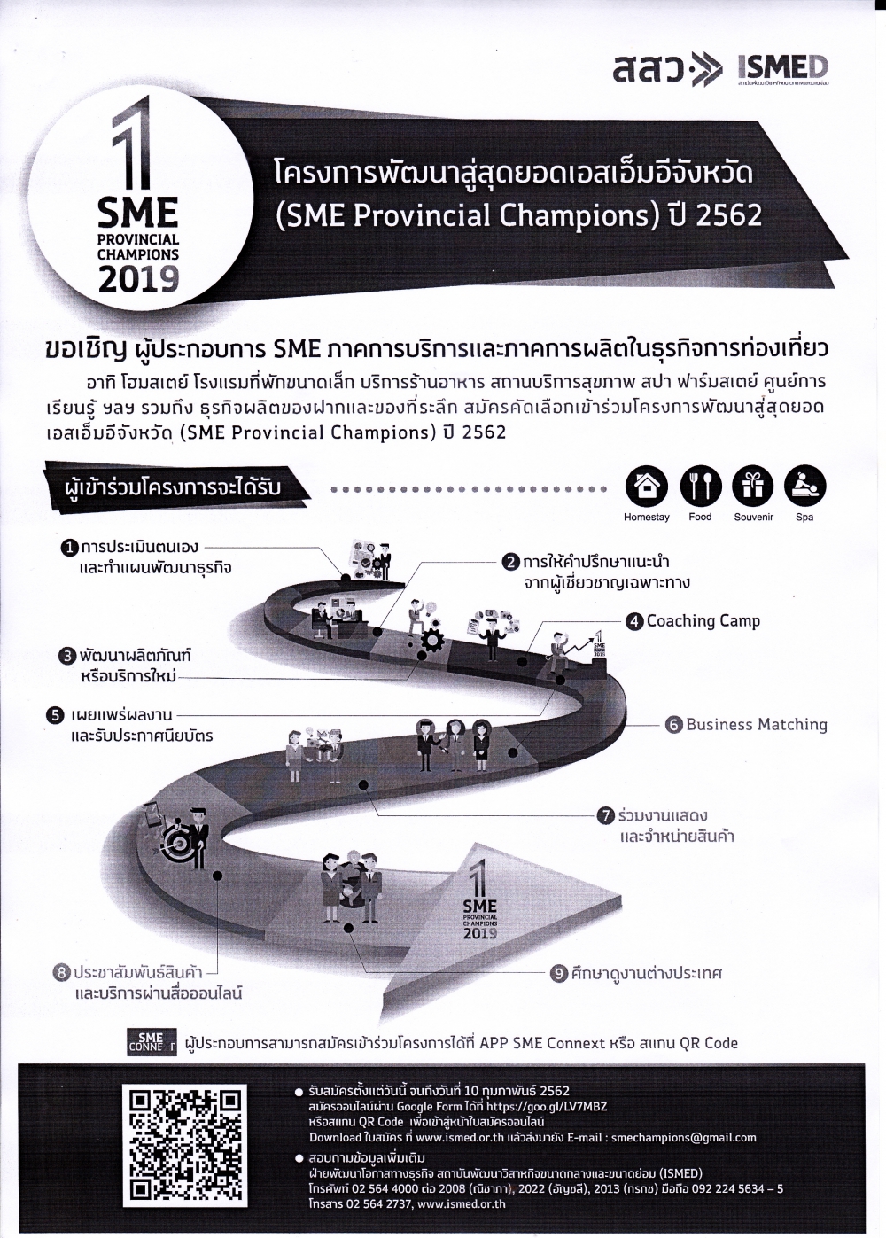ประชาสัมพันธ์พร้อมจัดส่งผู้ประกอบการเข้าร่วมโครงการพัฒนาสู่สุดยอด เอสเอ็มอีจังหวัด (SME Provincial Champions) ปีงบประมาณ 2562