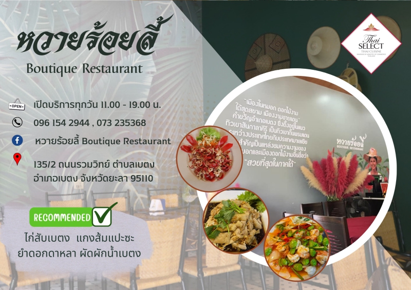 ร้านอาหารหวายร้อยลี้ Boutique Restaurant อำเภอเบตง จังหวัดยะลา